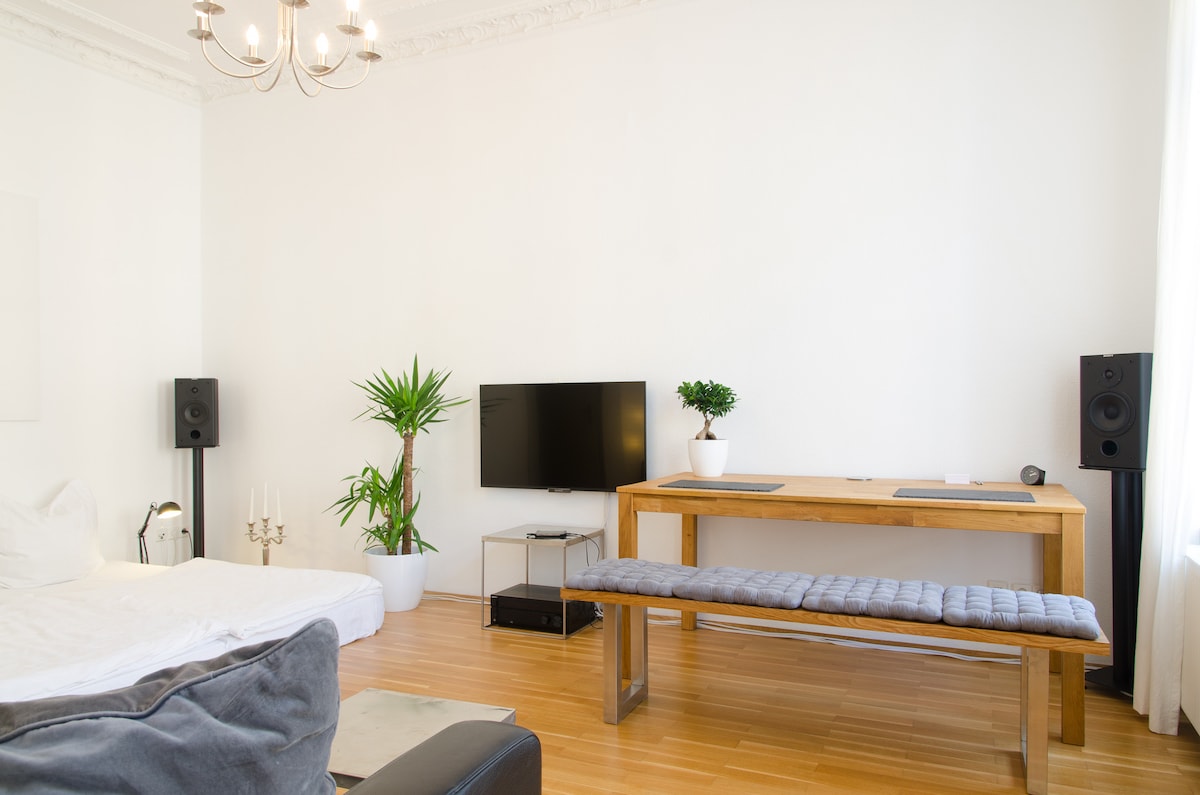 Umgib dich mit stilvollen Dingen. Das Einrichtungsteam von NoPlaceLikeHome gestaltete im „Urban Style“ eine Wohnung, die mit kräftigen Farben und hochwertigen Möbeln begeistert. Egal ob man im luxuriösen Boxspring Bett, auf dem Sofa oder der Hängeliege auf dem Balkon liegt, überall fühlt man sich zuhause. Das vitale Plagwitz bietet Bars, Restaurants, Clubs, Cafés und Geschäfte für die Produkte des täglichen Bedarfs. Hier findet man den ideal Ort um Leipzig zu erkunden.