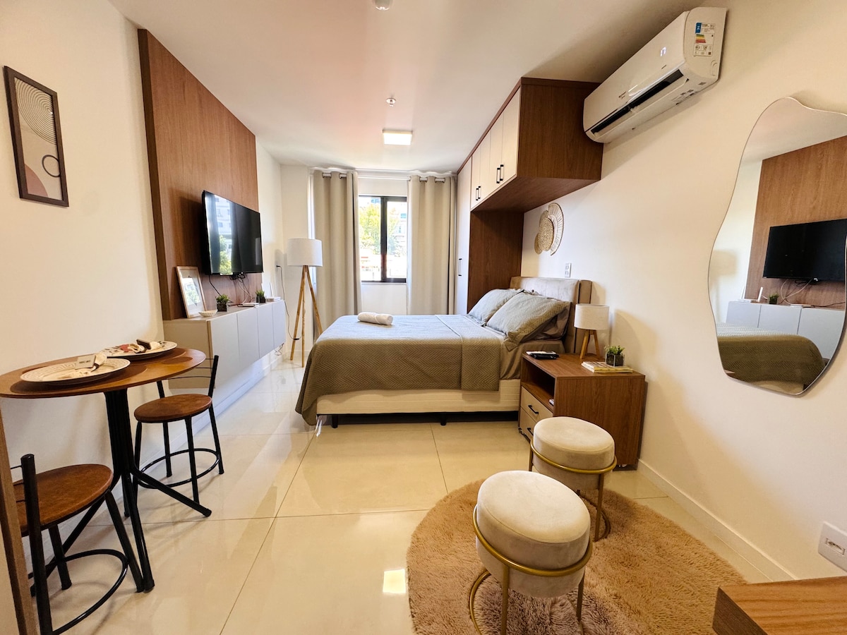 Estudio completo y acogedor en Volta Redonda. Disfruta de este moderno estudio con hermosas vistas, en una zona tranquila, a pocos minutos del Hospital Unimed y del centro comercial South Park. Equipado con aire acondicionado, wifi, cocina completa, cama doble y sofá cama, el espacio tiene capacidad para 3 personas en todas las comodidades. Ideal para aquellos que buscan practicidad y una ubicación estratégica, ya sea por trabajo o por placer.