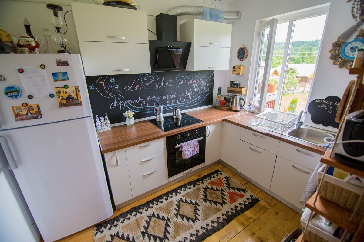 Bienvenido a nuestro acogedor y acogedor apartamento ubicado en una zona tranquila a solo unos pasos del centro de Gura Humorului. Ideal para familias, el apartamento ofrece todas las comodidades necesarias para una estancia relajante y divertida. Detalles: Dormitorio 1 con cama tamaño king para 2 adultos, dormitorio 2 preparado para 2-3 niños, con parque infantil y litera, cocina totalmente equipada, baño moderno, con ducha y toallas.