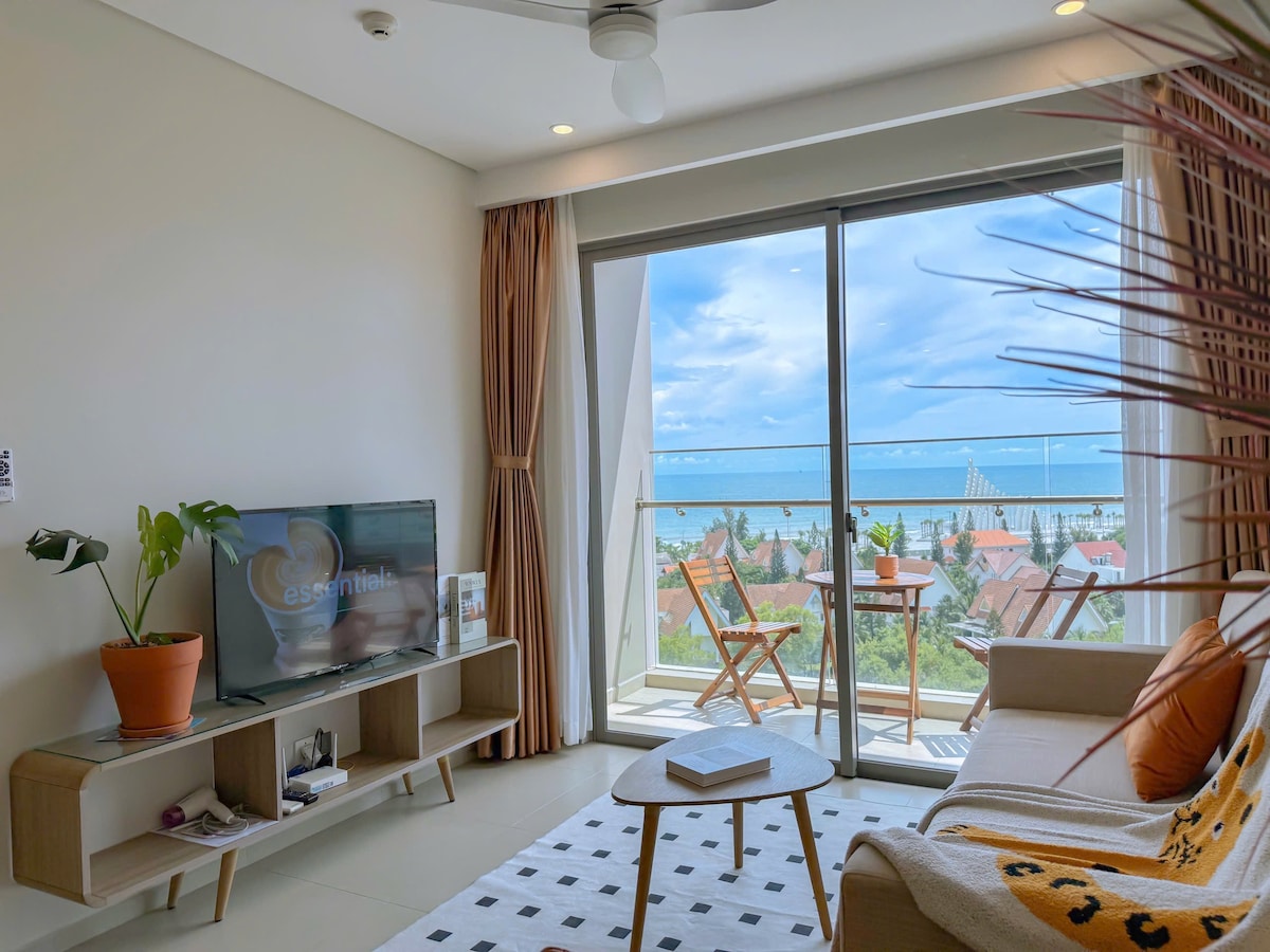 La ubicación céntrica, junto al mar, el apartamento tiene un amplio balcón con una gran puerta de vidrio frente al mar y a la ciudad, que proporciona una gran vista para ver el atardecer o el amanecer. El interior está diseñado en un estilo moderno, lujoso, con todas las instalaciones. Hay instalaciones completas como piscina, gimnasio, zona de barbacoa y zona de juegos infantiles, adecuadas tanto para familiares como para grupos de amigos. A pesar de su proximidad a la bulliciosa zona, el apartamento todavía garantiza un espacio tranquilo y privado, ideal para aquellos que quieren relajarse.