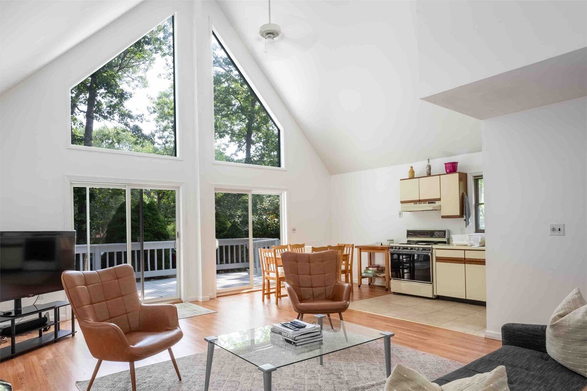 Muévete a través de los discos bajo techos altos y pasa el rato en el jacuzzi durante todo el año en este refugio de planta abierta de East Hampton. Relájate en el patio trasero boscoso, date un chapuzón en la piscina o el spa, desintoxica la sauna, asa a la parrilla en la barbacoa, relájate en los asientos del cine para ver una película y luego acurrúcate en la chimenea o la chimenea antes de dormir en camas súper cómodas. A pocos minutos del pueblo, playas y rutas de senderismo. Excelente para familias y amigos que buscan una escapada relajante. (¡No se utilizó IA en estas fotos!)