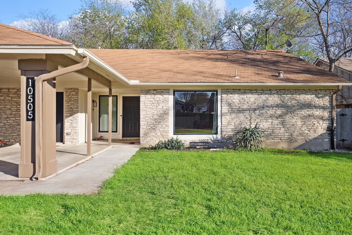 Favorito de los huéspedes en Austin ⭐ Un hogar acogedor lejos de casa: los muebles sólidos y los colchones de calidad hacen que sea fácil sentirse como en casa. ¡Aquí no hay un ambiente de Airbnb estándar! LO más destacado • Apta para mascotas: patio grande • Duerma bien: colchones Luxe + sábanas suaves • Cocina bien equipada y cuidadosamente abastecida • Espacio exterior: patio cubierto para comer/tomar café • Wifi rápido: internet de fibra de 1 Gb • Naturaleza cercana: kilómetros de senderos a 5 minutos • Excelente ubicación: cerca de los mejores restaurantes y lugares de interés de Austin • Limpieza impecable: mantenimiento meticuloso