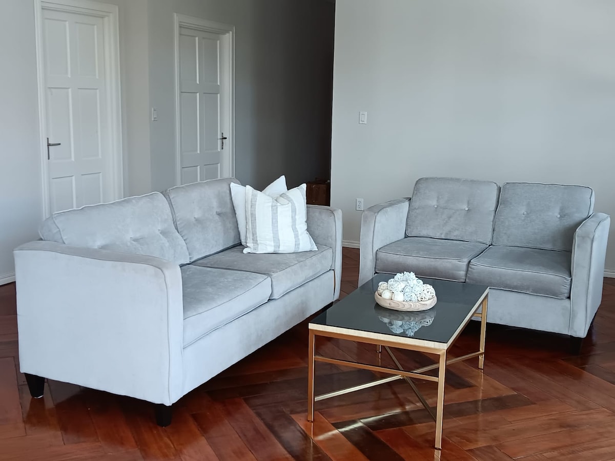 Relájate y disfruta de tu estancia en Paramaribo en este elegante y moderno alojamiento céntrico en un barrio seguro y tranquilo en Paramaribo South. El edificio de departamentos consta de 4 departamentos, cada uno tiene 2 dormitorios, 2 baños, amplio espacio de estar, cocina y balcón modernos, WiFi, TV de 43 pulgadas, camas tamaño queen, aire acondicionado, lavavajillas, horno, microondas, nevera, lavadora, secadora, amplio armario, agua fría y caliente y estacionamiento gratuito.