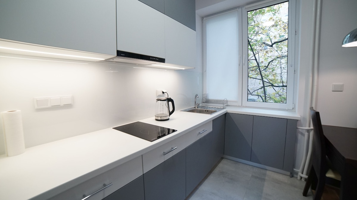 ¡Espacio de estacionamiento 🅿️ incluido en tu estadía! Apartamento acogedor, moderno e impecable en el corazón de Varsovia. ⭐ Internet de fibra ✅ rápida de 180 Mb/s: perfecto para el trabajo y el entretenimiento 🚇 Metro a solo 47 segundos a pie del edificio. 🏙 Palacio de la Cultura, museos, restaurantes, cafés y clubes justo al lado Ya sea que estés de visita por negocios o por placer, este lugar hará que tu estancia en Varsovia sea realmente especial. Ubicación ⭐ céntrica: ¡todo lo que importa a pocos pasos!