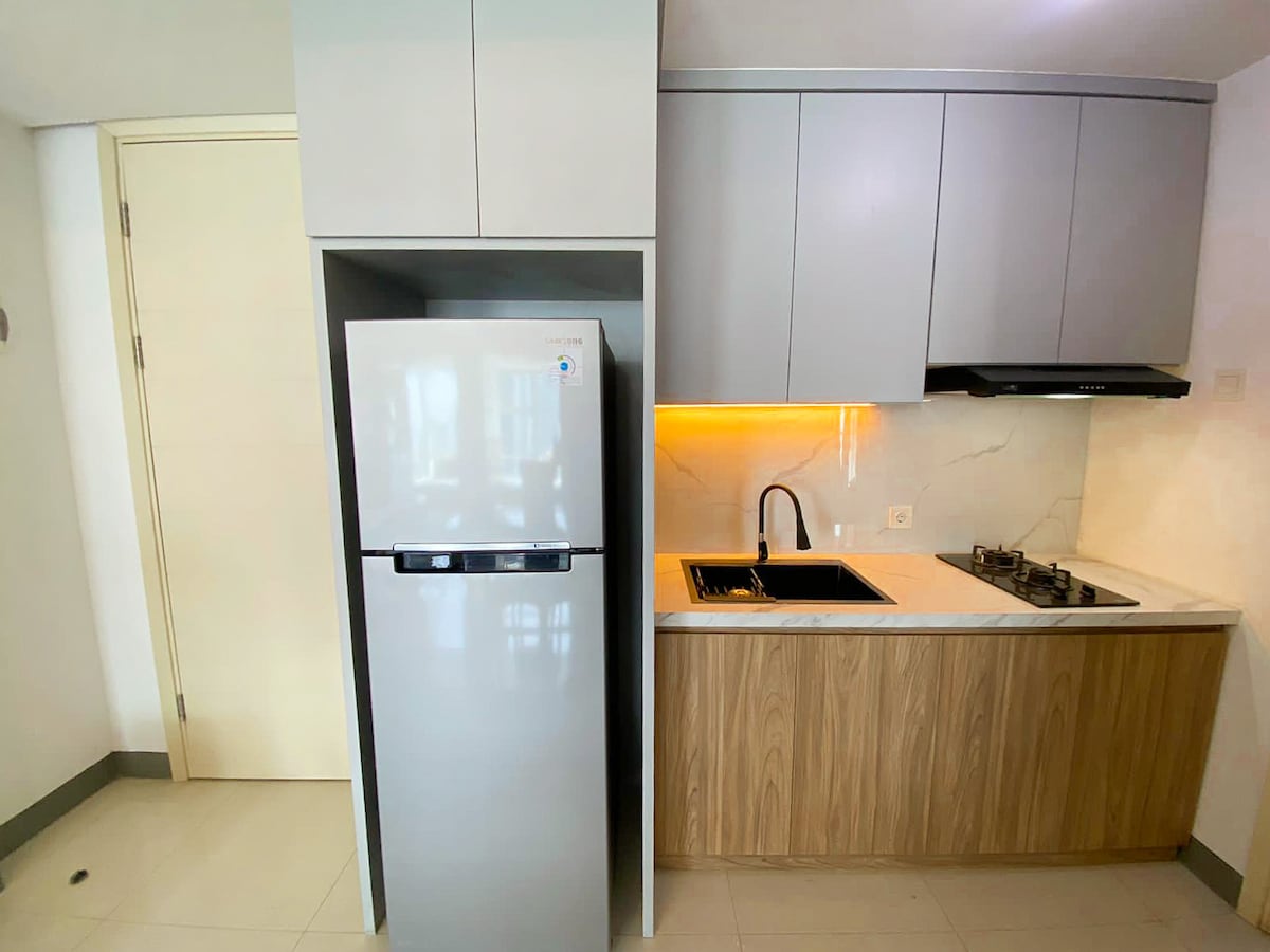Un apartamento moderno, bien diseñado y relajante para tu estancia. Con 2 dormitorios, 2 baños y una cocina bien equipada y muchas comodidades, es tu hogar lejos de casa. Tamaño del apartamento: 64 metros cuadrados. Ubicado en la parte superior del complejo del centro comercial Ciputra World, el apartamento tiene acceso directo a restaurantes, tiendas y entretenimiento. También está a solo 5 minutos en coche de la autopista, por lo que es una gran opción si quieres explorar no solo Surabaya, sino también los muchos lugares interesantes más allá de la ciudad.