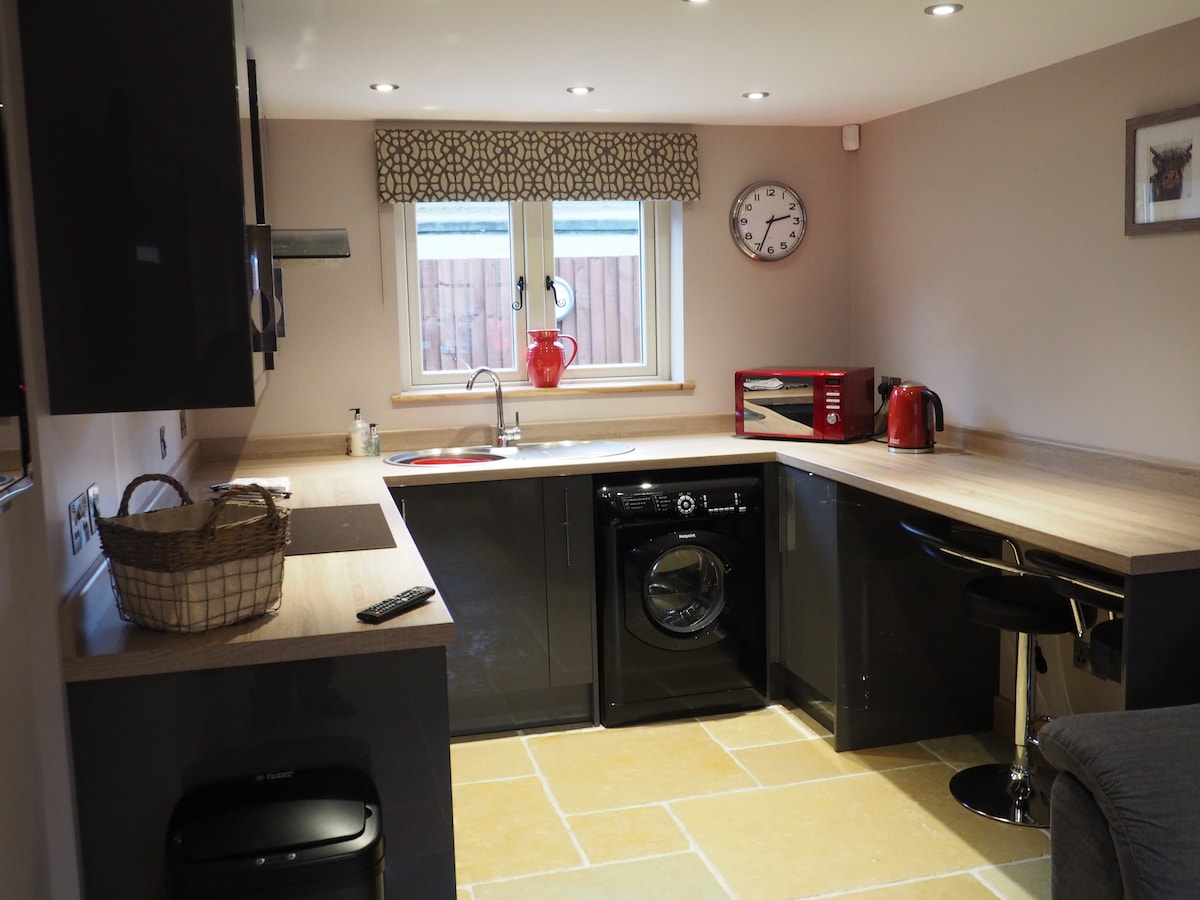 Relájate y desconecta en la suite Baginton Bear. Hay un pub al que se puede llegar a pie, ya sea subiendo o bajando la colina, y cafeterías en cada uno de los dos centros de jardinería. El castillo de Warwick está a poca distancia en coche y el castillo de Kenilworth está aún más cerca. Muy cerca se encuentra Regency Royal Leamington Spa, al igual que las catedrales de Coventry, de renombre mundial, tanto antiguas como nuevas. La encantadora suite tiene un cómodo dormitorio doble, cocina, baño privado, lavandería, sala de estar y comedor, y es justo lo que se necesita para cualquier estancia.