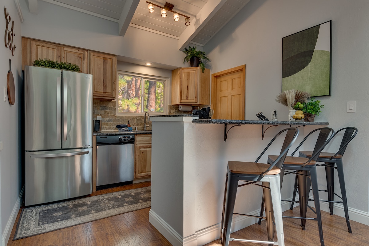 Nuestro refugio junto al lago está situado en la pintoresca costa norte de Tahoe. Perfecto para parejas, las características de la unidad incluyen cocina completa, un dormitorio con cama tamaño king, un baño, un colchón inflable tamaño queen (perfecto para niños de 12 años o menos), wifi, televisión por cable tanto en el dormitorio como en la sala de estar y televisores inteligentes. La unidad está a solo media cuadra de Lakeshore Blvd. y a pocos pasos del Hyatt. A pocos minutos de restaurantes, senderismo, ciclismo de montaña, tenis, golf y esquí de clase mundial.