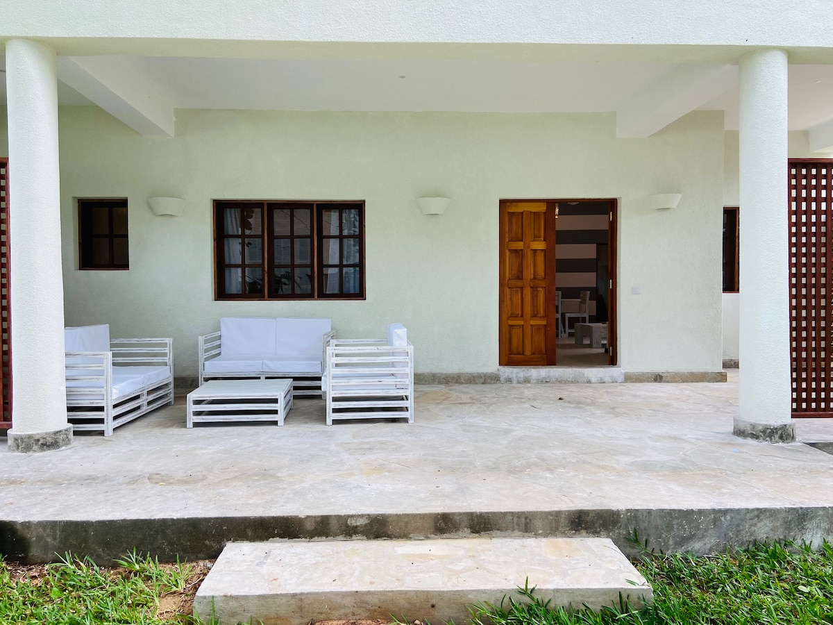 Disfruta de la elegancia de Kijani Paradise junto al complejo de playa oceánica de 5 estrellas y el club de golf de Malindi. Este hogar único lejos de casa tiene un estilo propio con la belleza de las conchas marinas y las criaturas. Hay una decoración de concha de langosta seca que puede ser tuya por un pequeño precio. Disfruta del amanecer, la brisa marina, la piscina, el césped y la vista al cenador desde la sala de estar mientras saboreas una deliciosa taza de té caliente de Kenia. Además, puedes dar un paseo de 5 minutos a la playa o verla desde la azotea.
