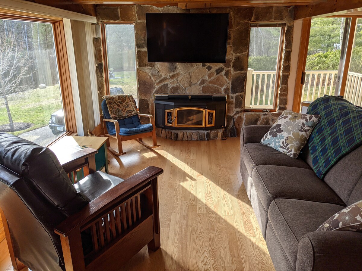 ¿Buscas una escapada tranquila y silenciosa? Nuestra casa de postes y vigas de Maine se encuentra en 7 acres frente al lago. Gran escapada para disfrutar de malvaviscos y un fuego crepitante, kayak, piragüismo, natación, paseos en bote o disfrutar de una gran película. Para los esquiadores de descenso, cerca de King Pine, Sunday River, Shawnee Peak y Black Mountain. Esquí de fondo y raquetas de nieve en la propiedad y en el lago. Si tienes una moto de nieve, hay excelentes senderos disponibles. Por último, grandes compras en los outlets de la cercana North Conway.