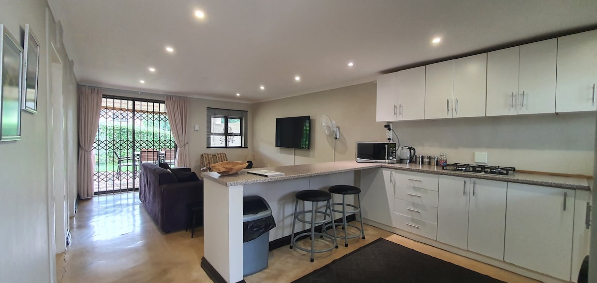 Un espacio hermoso y soleado. Totalmente equipado con todo lo necesario para ser un hogar lejos de casa. Aire acondicionado, wifi rápido, TV, cocina bien equipada y un espacio de trabajo dedicado si es necesario. Situado en el suburbio central de Westville, lo suficientemente cerca de tiendas y atracciones populares, pero ubicado en un tranquilo jardín lleno de vida para que lo disfrutes. Aparcamiento seguro en el hotel para 1 o 2 coches disponibles. El patio privado con zona de estar exterior permite un ambiente relajante para satisfacer tus necesidades vacacionales o de negocios.