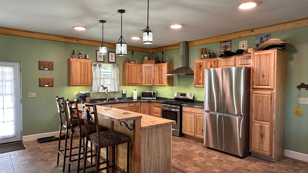 The Bunkhouse – Where Horses and Dogs are Always Welcome! There’s room everyone! Horses have a place to rest. And no need to leave your pup behind, because The Bunkhouse is proudly pet-friendly. Enjoy morning coffee on the porch or gather around the firepit for an evening of relaxtion. Or maybe competition is more your speed with a game of horseshoes. The Bunkhouse is designed for comfort with a western twist. Kick off the boots, pour a drink and stay awile!