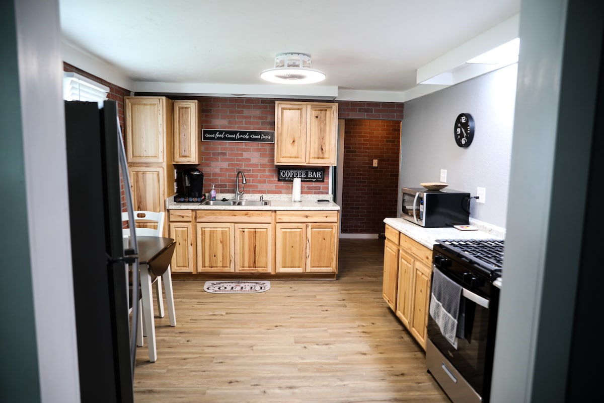 Lleva a toda la familia a este fantástico alojamiento que tiene un montón de espacio para divertirse. Cama tamaño king, tamaño queen y una cama de matrimonio. Espacio suficiente para una familia o un grupo grande. Hay mucho aparcamiento delante o detrás de la casa para coches o camiones con remolques. Fácil acceso. Tendrás que adquirir un permiso anual de 10 dólares para conducir vehículos de 4 ruedas en el área en el ayuntamiento, la tienda de comestibles Zook's o la licorería. Hermoso espacio abierto, cocina grande, remodelación completa del baño con ducha grande. Nueva parrilla para uso exterior.