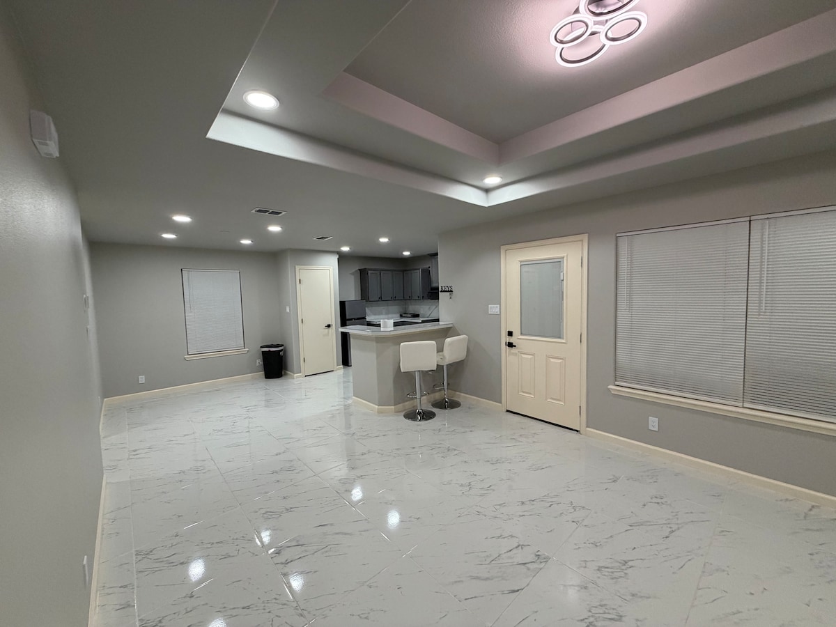 Nuevo estudio ubicado en la zona noreste de Laredo, donde podrás relajarte en una cómoda cama de espuma viscoelástica, con wifi, TV de alta definición, microondas, nevera, cocina eléctrica y aparcamiento para huéspedes en la entrada. Cerca de centros comerciales, Doctors Hospital, Academy, Burlington, Ross, Walmart, HEB plus. También cerca de restaurantes de comida rápida como Whataburger, Freddy's, Chick-fil-A, Starbucks, Arby's, Cheddars y más. Cine Alamo, entretenimiento familiar Pla-Mor. Cerca del aeropuerto y de la Universidad TAMIU. No se permite fumar.