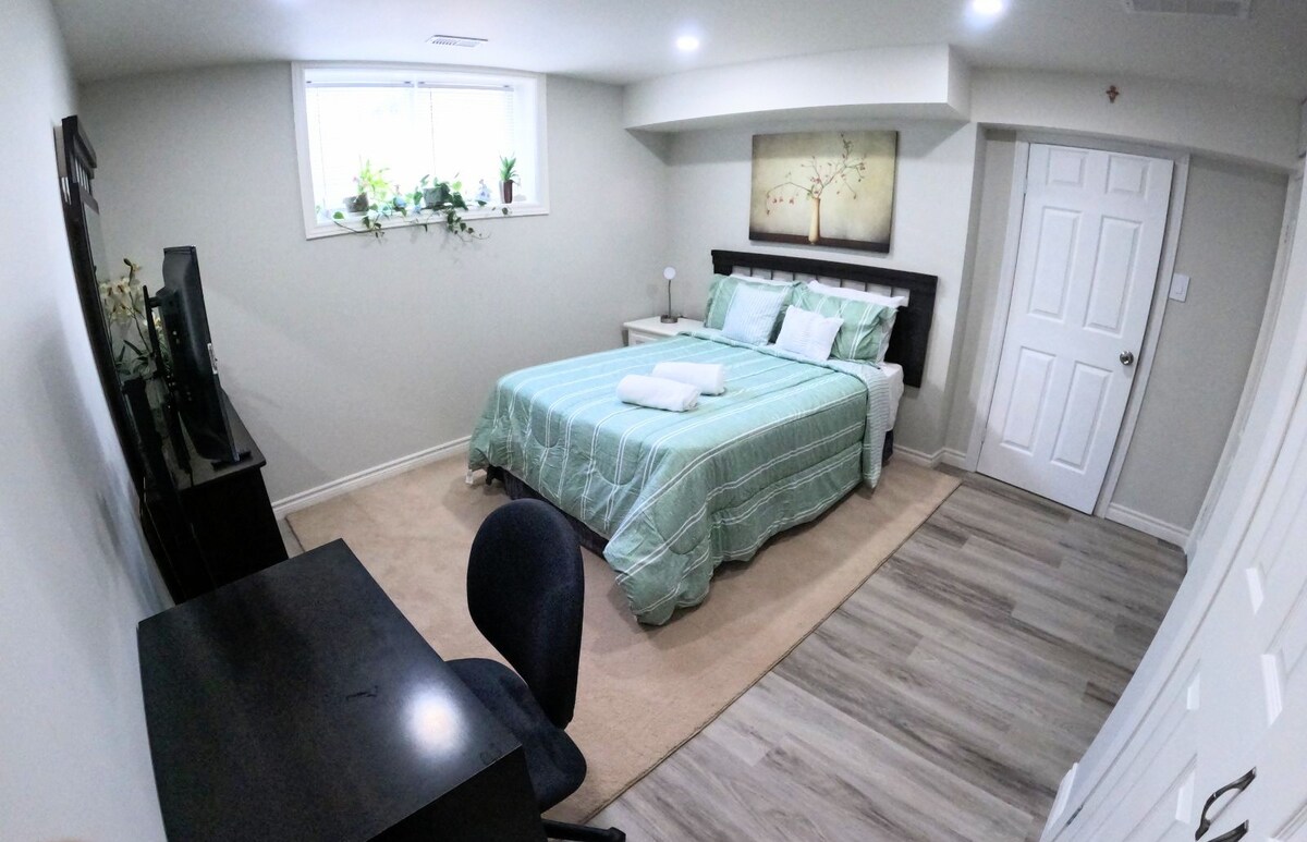 Bienvenido a nuestra acogedora e inmaculada suite en el sótano de 2 dormitorios ubicada en un barrio tranquilo y familiar, ¡central a increíbles lugares de Guelph que quizás desees visitar durante tu estancia! - A 6 minutos en coche de la Universidad de Guelph. - A 10 minutos a pie de la parada de autobús más cercana. - A 8 minutos en coche de la estación central de GO de Guelph. - A 8 minutos en coche del centro comercial Stone Road y de las plazas cercanas. - A 15 minutos en coche del área de conservación del lago Guelph. ¡Y muchas más atracciones!