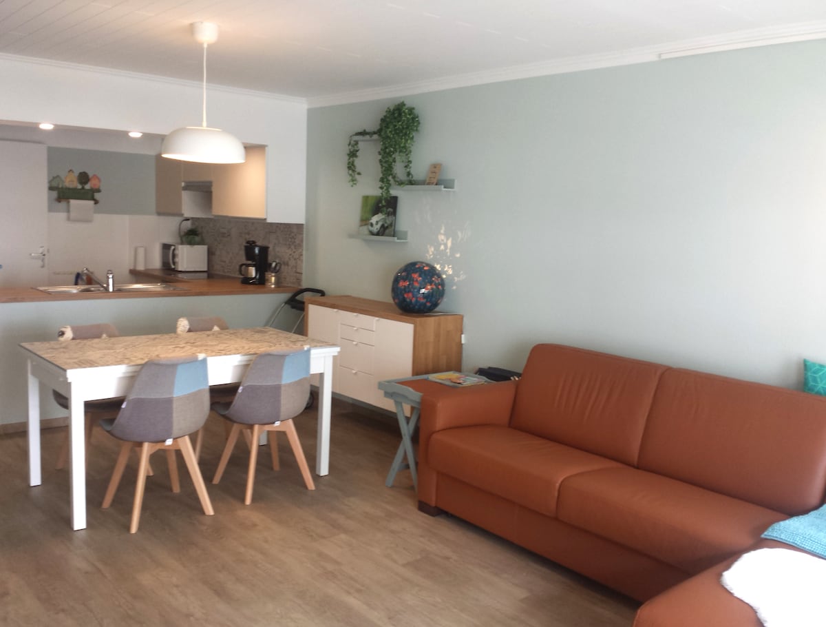 Relájate con toda la familia en este alojamiento tranquilo. El departamento ha sido completamente renovado. Wenduine es un excelente destino para unas agradables vacaciones con un dique marino y una rotonda sin tráfico, una hermosa playa de arena ancha, una acogedora calle comercial con grandes almacenes y panadería, las dunas y el bosque, una piscina a pocos pasos. Justo enfrente del departamento hay un bote de juegos para los niños en la playa ( ver foto).