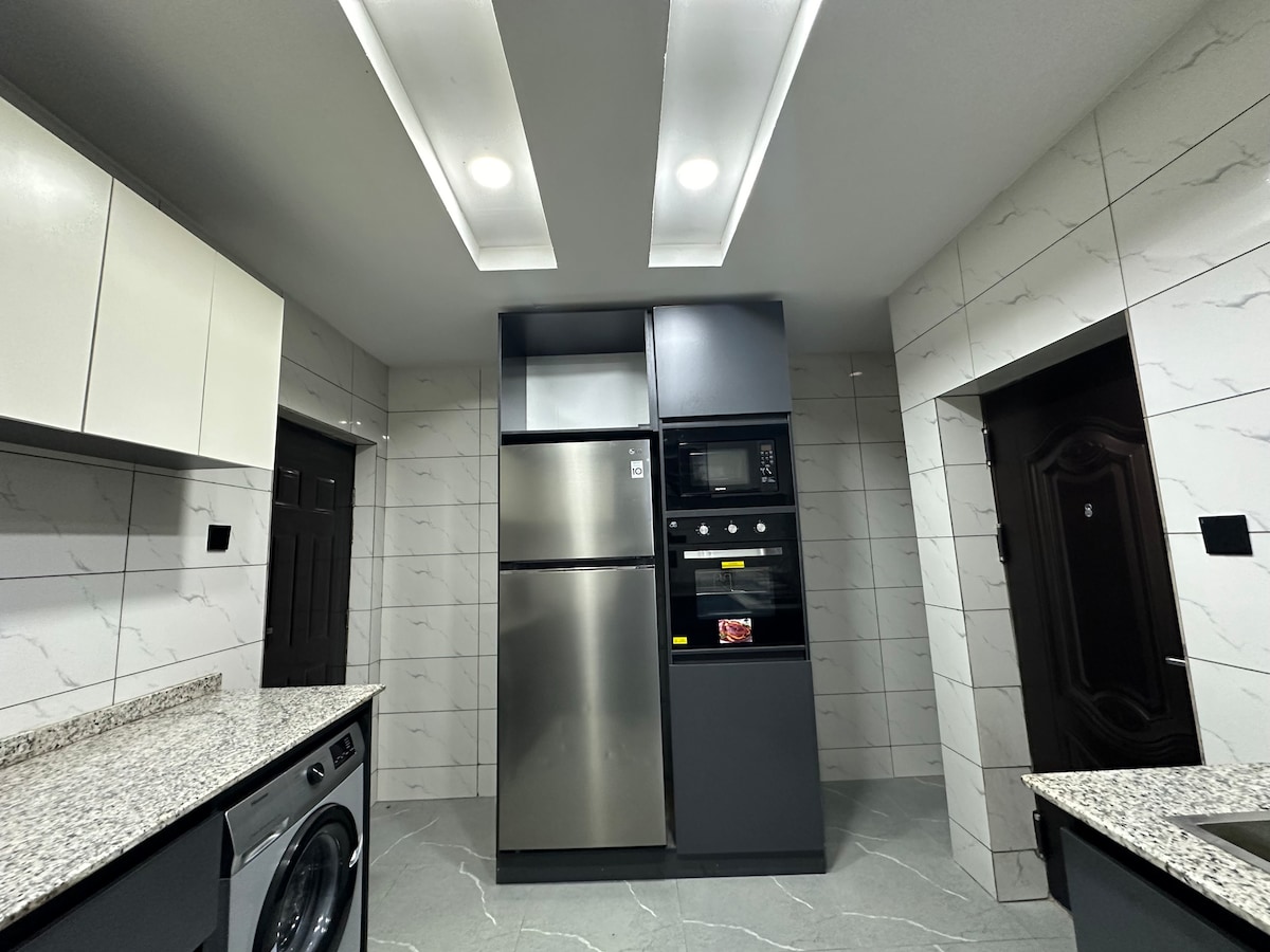 - 3 dormitorios y 2 baños (1 privado en suite, 1 principal). - Sala de estar con TV inteligente de 55 pulgadas. - Cocina totalmente equipada (incluye lavadora). - Agua caliente - Comedor. - Entrada privada. - Zona de barbacoa/parrilla. - Wifi de alta velocidad. - Aparcamiento gratuito (hasta 3-4 coches) - Cámaras de CCTV y vallas eléctricas para tu seguridad. - Servicio de limpieza gratuito cuando sea necesario. - Llegada autónoma con nuestro conserje 24/7. *GENERADOR DISPONIBLE PARA CORTES DE ENERGÍA ¡Perfecto para familias, turistas y viajeros de negocios!