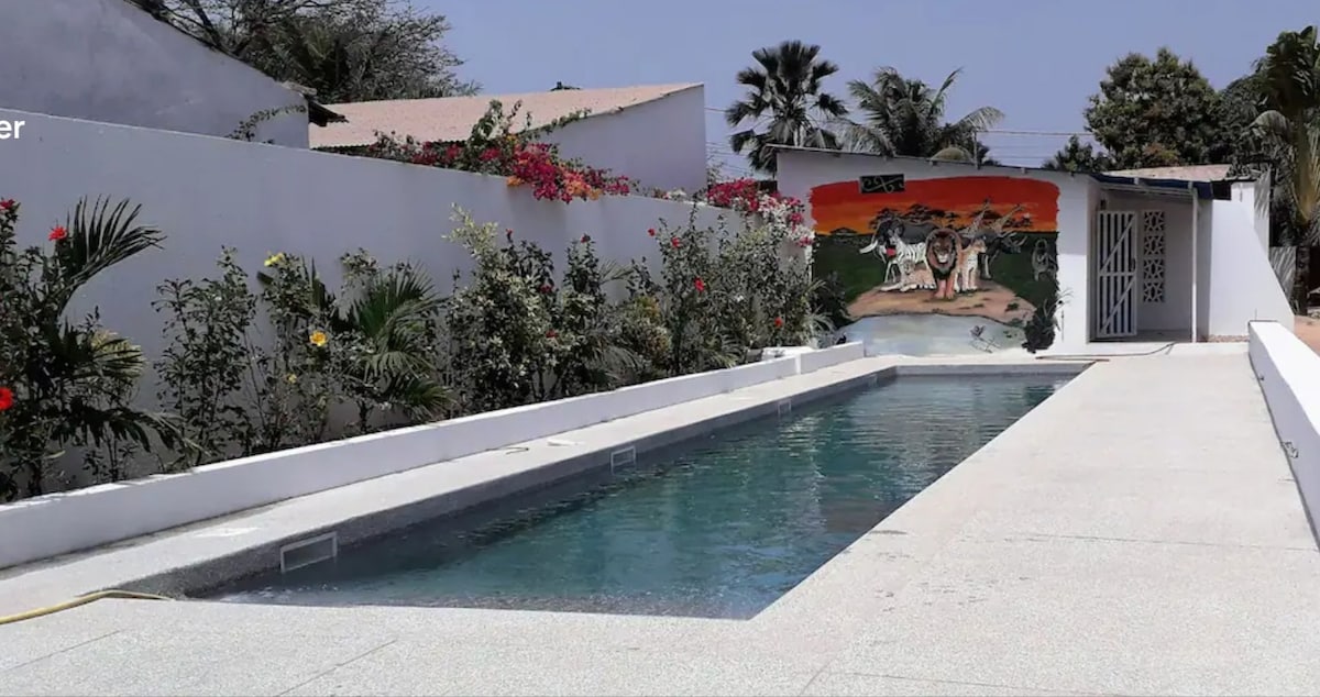 Un alojamiento sencillo y cómodo para toda la familia e incluso para individuos. Este bungaló es recién bult y fresco con muebles modernos y cómodos. Wifi gratuito (24 horas) de muy buena velocidad, ideal para las personas que trabajan desde casa. Todas las habitaciones tienen aire acondicionado y ventilador de techo, incluida la sala de estar. Esta propiedad se encuentra en la carretera costera central de Jabang/Sukuta. Está cerca de la mayor parte del punto principal, como Senegambia, Serekunda, Brikama, el aeropuerto y muchos supermercados.