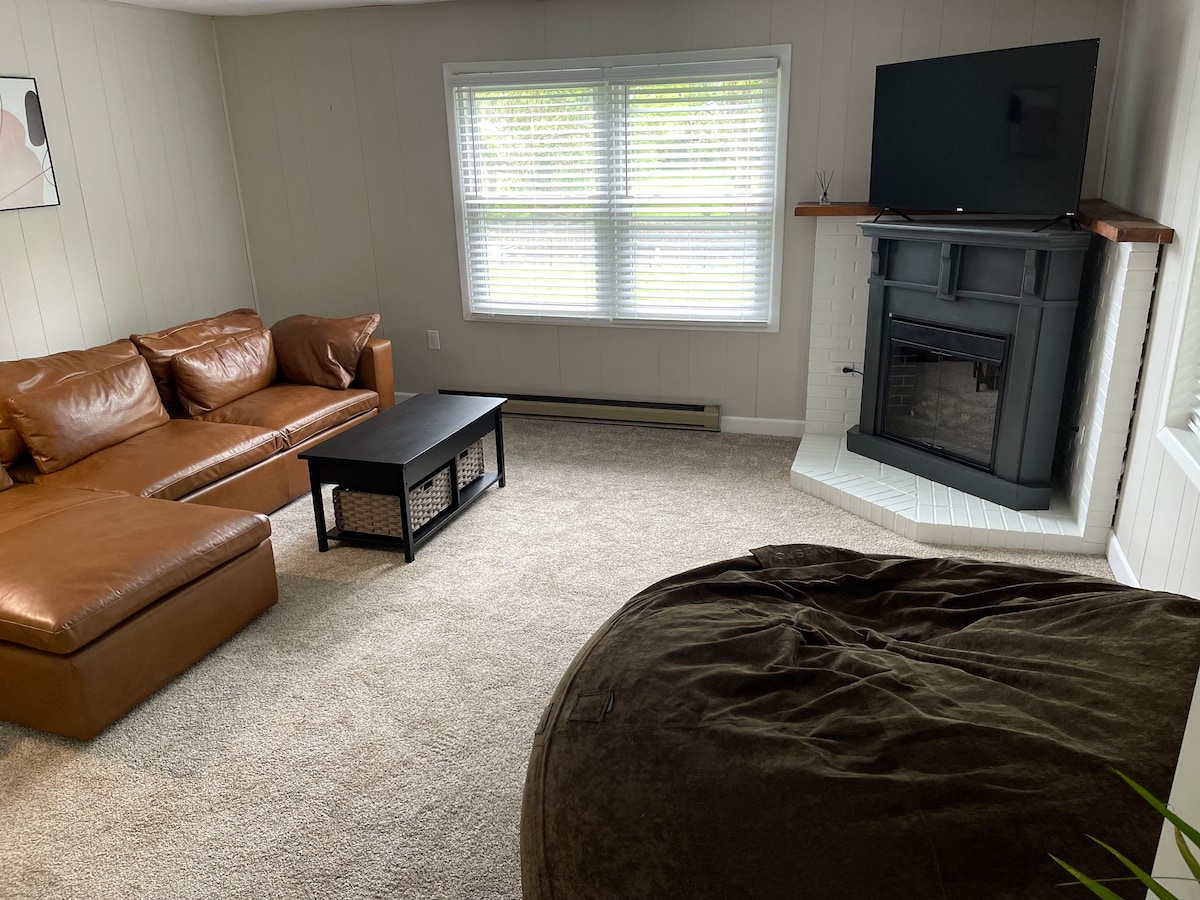 ¡Casa pequeña! Disfruta de una casa de 420 pies cuadrados, ¡un patio privado vallado para tus amigos peludos! Relájate en la espaciosa terraza o aprovecha el gran patio lateral, ideal para correr y jugar con tu perro. Además, relájate junto a la acogedora chimenea con leña incluida y un columpio para la máxima relajación. ¡Perfecto para dueños de mascotas y amantes de la naturaleza por igual!
