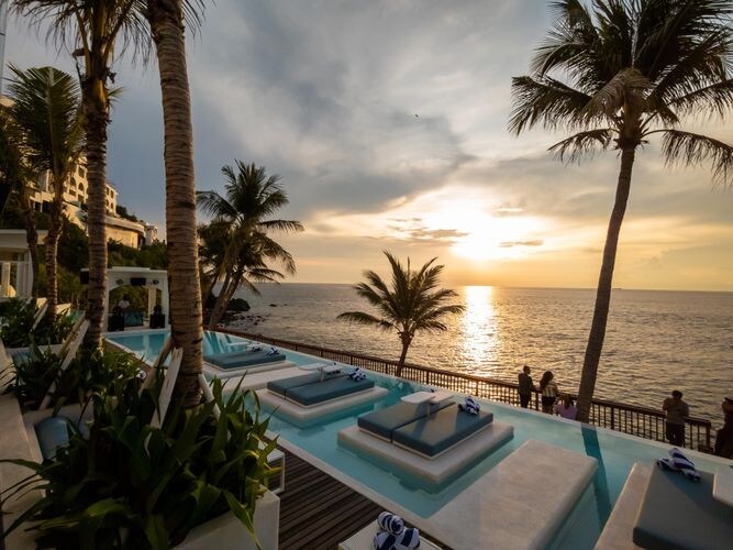 Un hotel boutique, caracterizado por una ubicación, servicio y diseño en particular. Se encuentra en la ladera de una montaña con vistas a un gran palmeral y a una selva, pero al mismo tiempo rodeado de bahías con playas de arena blanca.