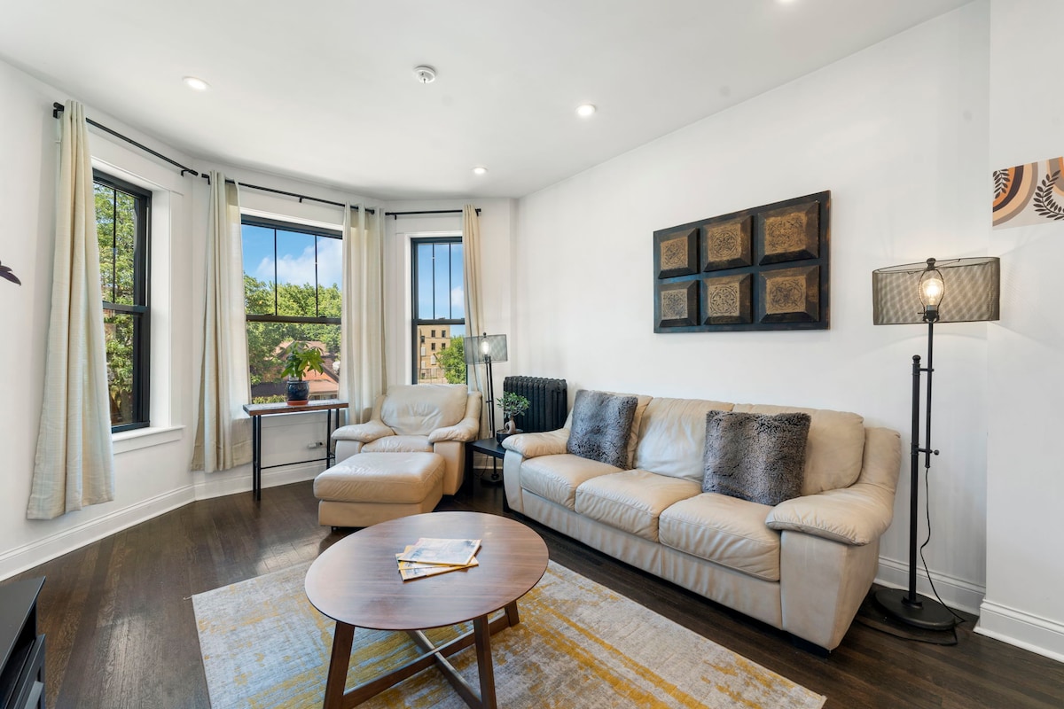 Disfrute de un departamento de 2 dormitorios en el primer piso, totalmente renovado, en una calle tranquila y arbolada. Limpio, moderno y diseñado para ofrecer comodidad y tranquilidad. A pocos pasos de restaurantes y tiendas, con fácil acceso al Metra, a la línea rosa del CTA y a un autobús directo a Midway. El centro de Chicago está a 20 minutos; el United Center y el Soldier Field, a solo 15 minutos. Un refugio privado y elegante que combina lujo, comodidad y comodidad.