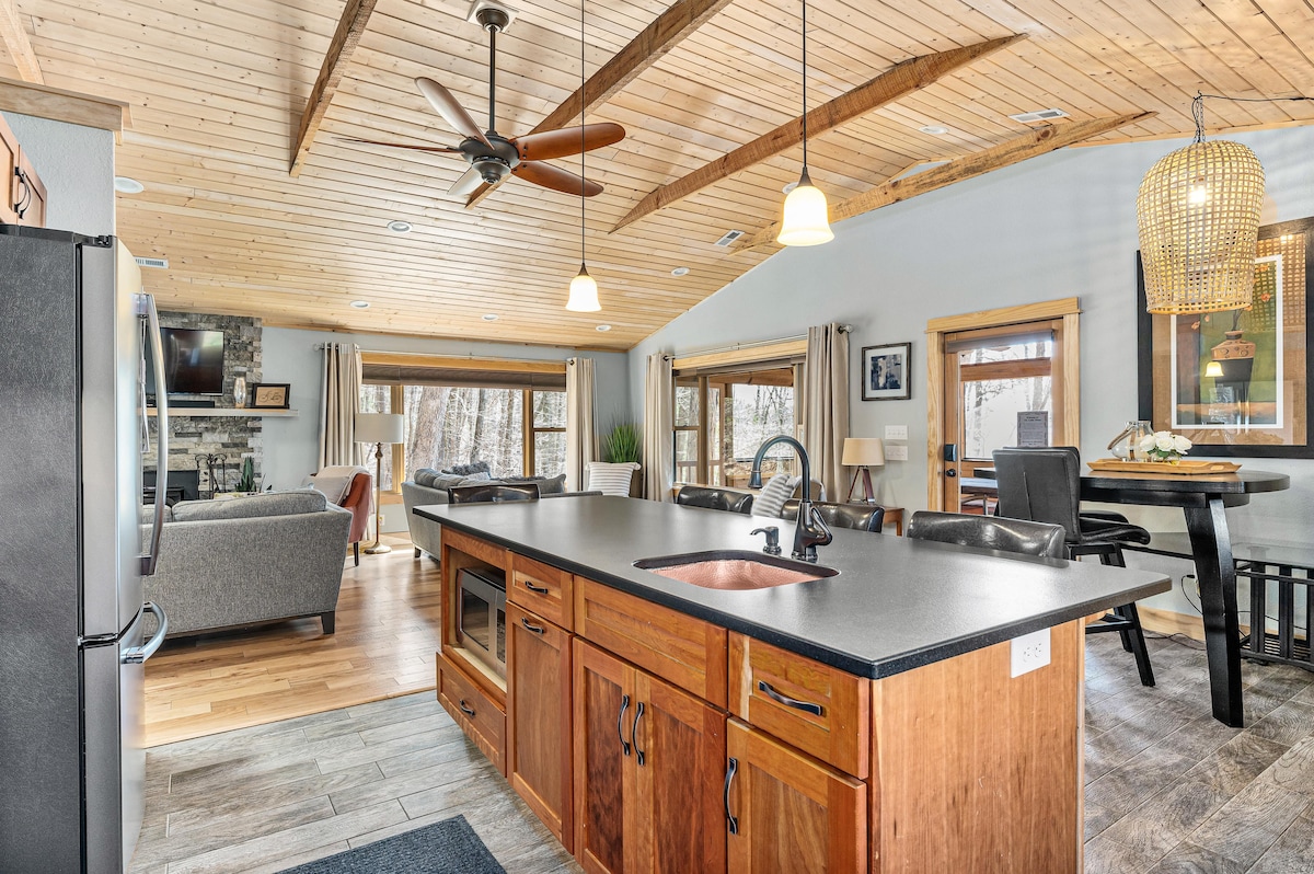 Vistas majestuosas: 2 suites King, fogata, Internet rápido de fibra óptica Diseñado por artistas y a pocos minutos de la Escuela de Artesanía Penland, Conley House es cómodo, elegante y único. Esta moderna cabaña en 6 acres privados cuenta con arte inspirado, vistas majestuosas, cocina de chef, vajilla hecha a mano, dos amplias suites principales, suministros de arte e internet de fibra ultrarrápida, perfecta para trabajar o jugar. Bono: una oficina de estudio independiente/3er dormitorio hace que el espacio de trabajo creativo o habitación de invitados sea lo último.