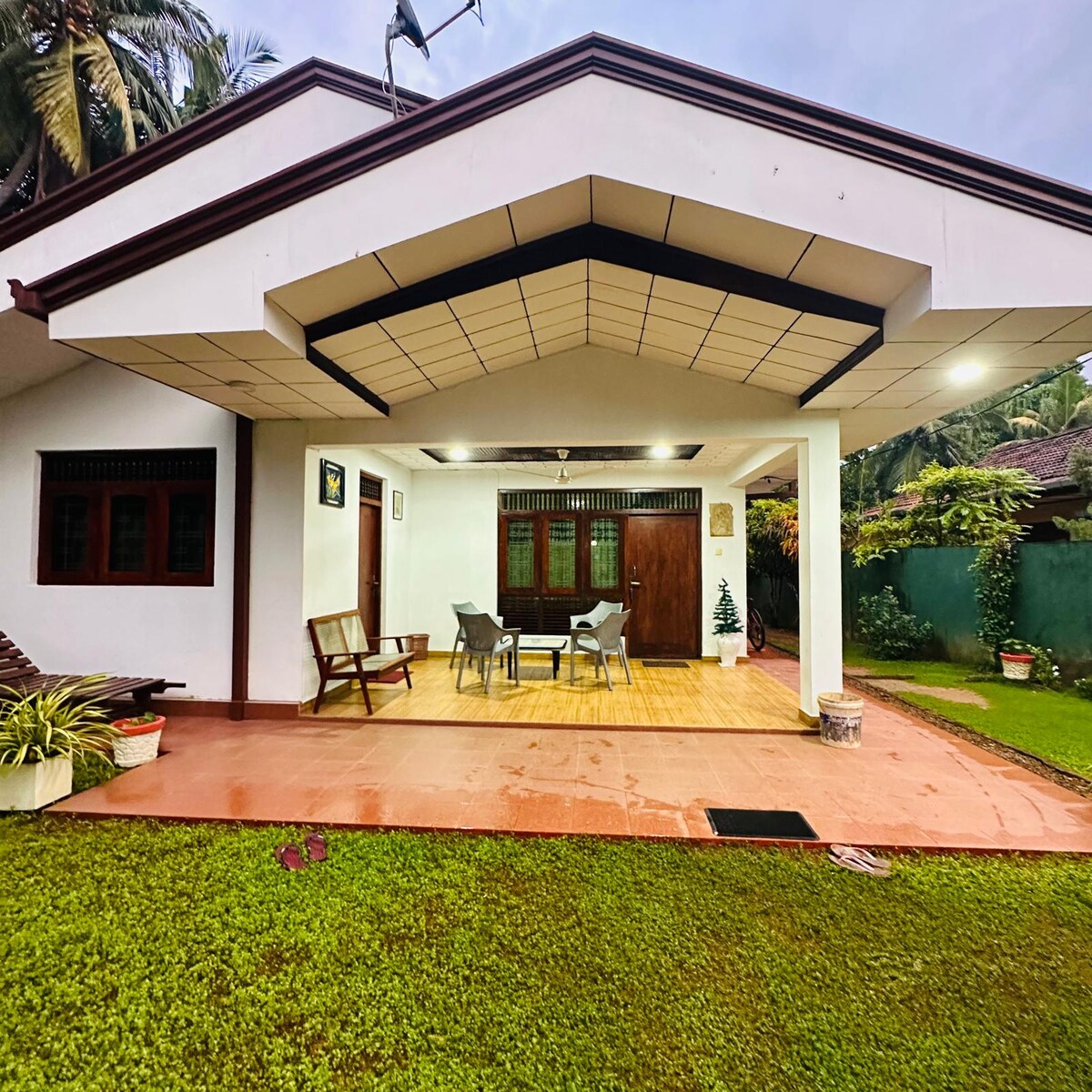 Ubicada en una exuberante plantación de cocos y canela cerca del aeropuerto de Colombo, muy cerca de la ciudad de Negombo, esta pequeña casa privada ofrece wifi, aire acondicionado, agua caliente, una ducha semiabierta y una cómoda cama con ropa de cama de calidad. Disfruta de paseos por el pueblo, paseos en bicicleta y tranquilidad con un cuidador en el lugar las 24 horas del día, los 7 días de la semana. Una mezcla perfecta de naturaleza, confort y auténtico encanto de Sri Lanka: tu hogar sereno lejos de casa. El alojamiento es realmente único. El desayuno tradicional de Sri Lanka está incluido en la tarifa de la habitación.