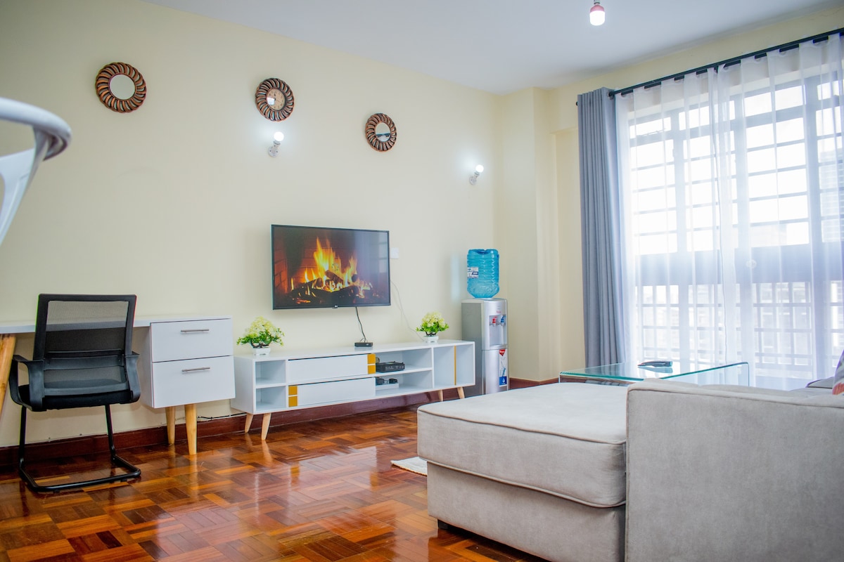 Stylish Westlands Retreat | Pool, Gym, 75” TV, A/C Stay in a sleek, modern apartment in the heart of Westlands—perfect for business travelers or couples. Enjoy air-conditioning, high-speed Wi-Fi, and a dedicated workspace, plus premium entertainment on a 75-inch Smart TV with Netflix, Prime Video, Chromecast, and a PS4. Relax with access to a stunning rooftop pool, fully equipped gym, and a chic rooftop bar & restaurant—all while being steps from Nairobi’s best dining and shopping spots.