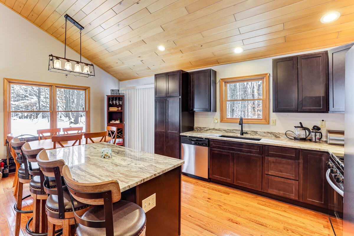 Esta cabaña alpina con estructura en A en el bosque cuenta con 3 dormitorios y comodidades para una estancia de cuatro estaciones. La cocina tiene un concepto abierto a una amplia sala de estar con chimenea natural. Dos baños completos, lavandería en el primer piso, terraza al aire libre y chimenea. Ve directamente a las pistas de motos de nieve, esquía a 25-30 minutos en Caberfae & Crystal Mountain, ciclismo de montaña, ciclismo de carretera a Traverse City. Senderismo, piragüismo/kayak y ATV/UTV. La temporada de caza está en marcha, consulta los sitios web de Michigan para conocer las zonas circundantes autorizadas.