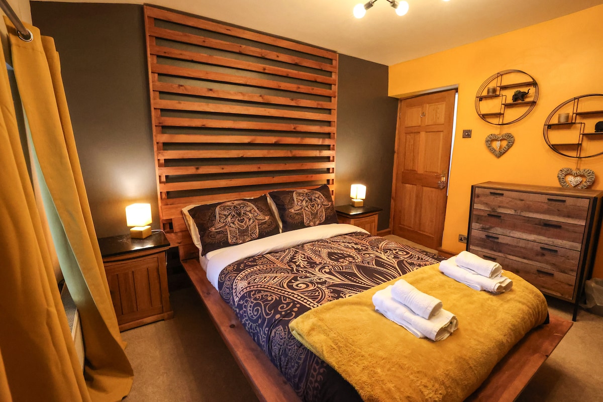 Experience luxury and comfort in this exquisite short-stay apartment. It boasts high-quality fittings and is meticulously furnished to create a harmonious blend of modern convenience and timeless charm. It's fabulous location at the Gateway to the Peak District, very close to the Peak Forest Canal and wonderful famous Peak District walks. Welcome max 2 dogs at £20 per dog payable to the host. 10% off breakfast voucher at Bridge 42 - a short walk!. Paid parking in car park or free street parking.