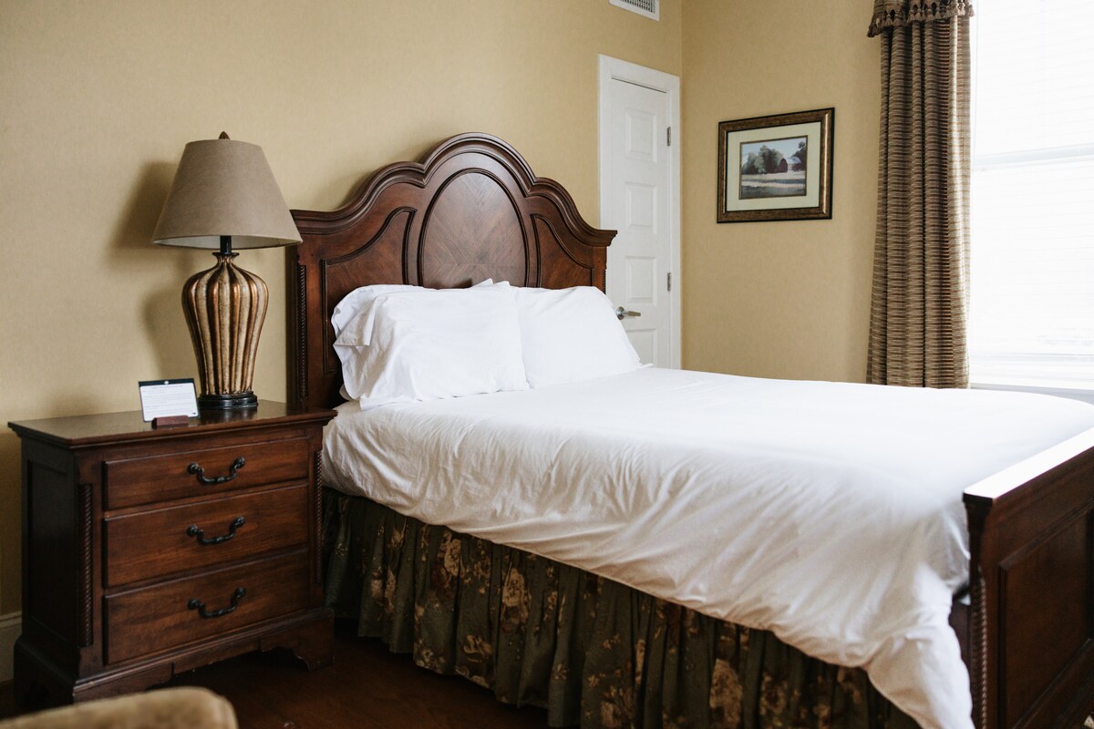 • One comfortable queen bed + 1 pull out sofa — ideal for families, couples, and weekend explorers visiting Lawrenceburg, TN • Coffee + tea station with locally roasted blends, French press & kettle for easy mornings • Clean, family-friendly motel room with thoughtful touches for a stress-free stay • Fast Wi-Fi, smart TV, mini-fridge & microwave — perfect for short stays or weekend trips • Calm woodland-inspired design to unwind after exploring downtown Lawrenceburg or David Crockett State Park