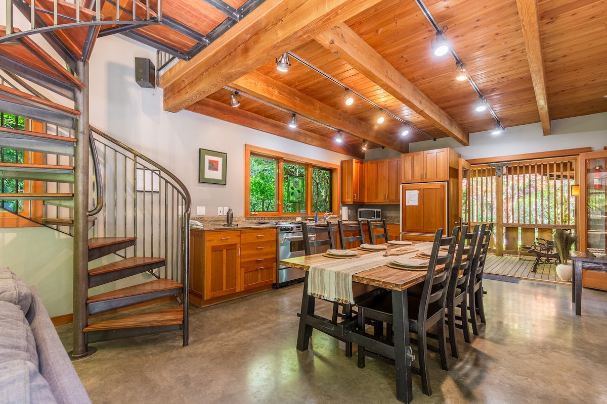 A quiet retreat with expansive water views & backdrop of lush Maple, Cedar & Fir trees. Be w/nature -Relax on the large deck, take in 100’ waterfront views, spectacular sunsets or stroll down stairs to our private beach. Be nourished -Prepare meals in this sizable kitchen filled w/Stainless Steel appliances. Be Inspired -Separate studio space to create-journal, write, practice yoga, meditate, draw, read, finish projects or simply slow down. Do things you haven’t had the time & space to do here