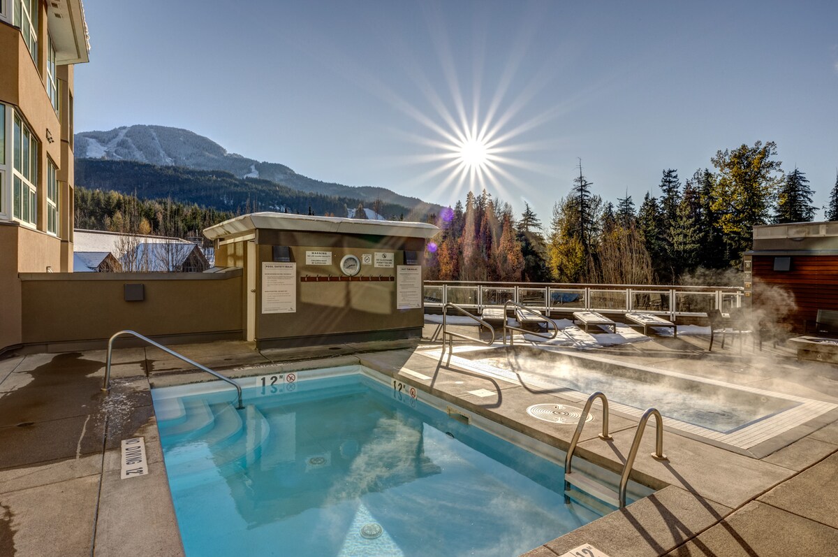 VENTAJAS DE LA UBICACIÓN: - Entrada/salida de esquí (dependiendo del nivel de nieve) - A 12 minutos a pie de Whistler Village - Ubicación tranquila - A poca distancia a pie de hermosos senderos como Lost Lake. VENTAJAS DEL ESPACIO: - Piscina climatizada, jacuzzi, sauna y gimnasio en el lugar. - Cama tamaño King con edredón de lujo y almohadas. - Mucha luz natural con vistas a la montaña Blackcomb - Acogedor espacio con chimenea de gas. - Patio para espacio al aire libre - Almacenamiento de esquís y bicicletas Número de registro de BC STR: H103944046