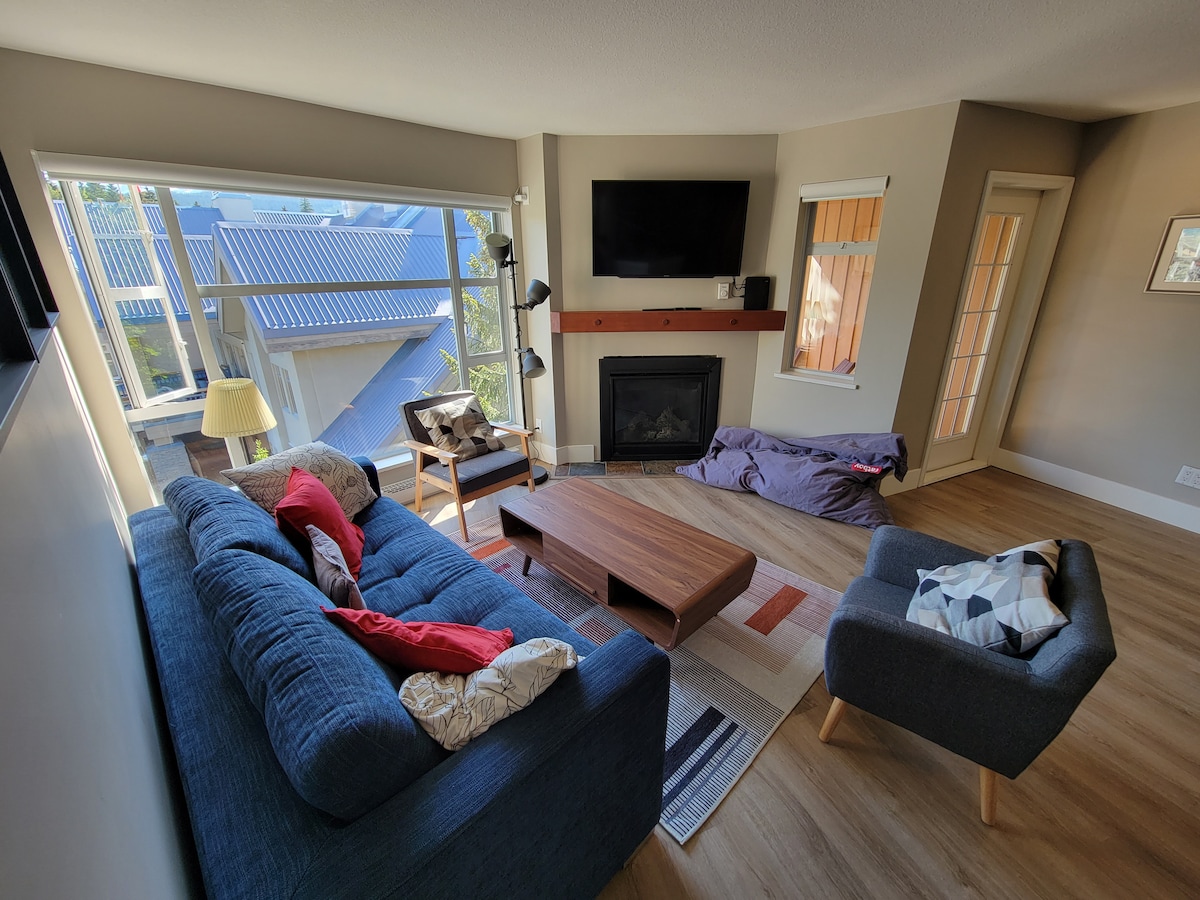Welcome to your mountain oasis. A 1 min walk from the Blackcomb lift! Our modern condo is a bright, spacious 1 bedroom with wrap around windows for perfect tree-lined and mountain views. Look right up Whistler mountain while sipping coffee from your kitchen table! The suite has it all: - king bed - sofa bed - full kitchen including a new dishwasher - soaker jet tub - Keurig - Bose speaker - central A/C - upgraded July 2025 The building has a gym, laundry, pool and outdoor hot tub.