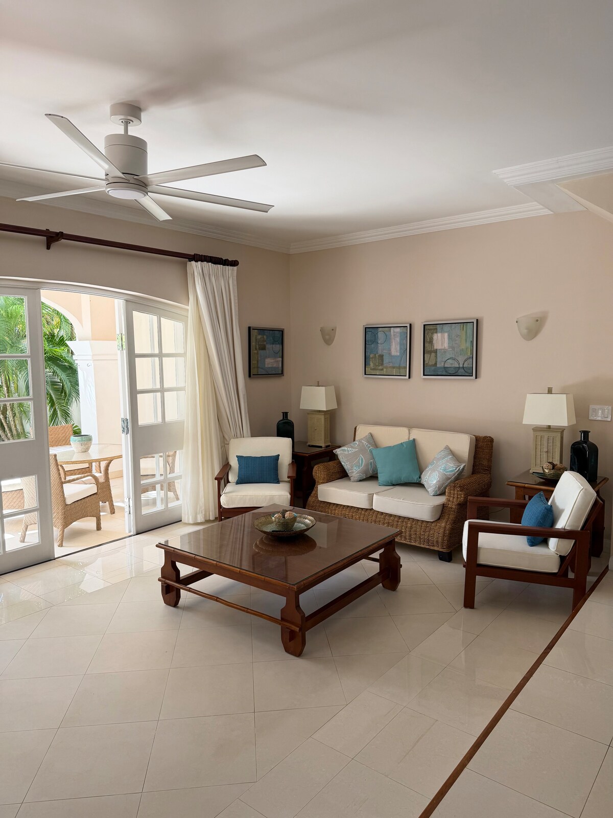 Relájate en este espacio tranquilo y elegante. "Monkey Corner" está situado dentro del barrio de Forest Hills en el prestigioso centro vacacional Royal Westmoreland. Esta impresionante villa de 2 dormitorios y 2 baños cuenta con una casa de invitados privada privada con dormitorio doble, una piscina profunda y vistas impresionantes al campo de golf y al mar Caribe. El acceso a las instalaciones del Royal Westmoreland Club está disponible por un costo adicional, de conformidad con el Reglamento del Club. Consulte «Acceso para huéspedes»
