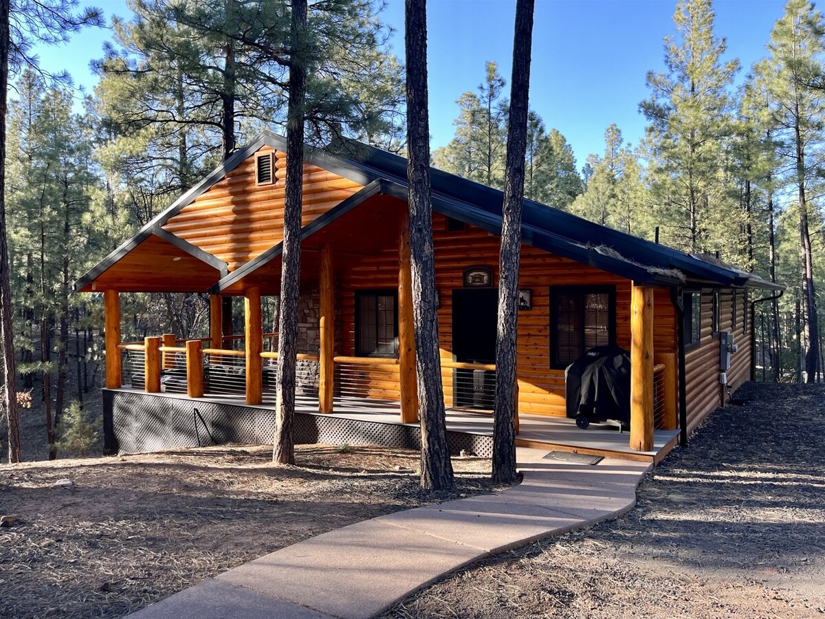 Este alquiler está justo entre Showlow y Pinetop. La cabaña de madera es perfecta para una persona, una pareja, así como un grupo pequeño o una familia. Se admiten mascotas. El loft de arriba es un éxito entre los niños y los durmientes adicionales. Los huéspedes pueden acceder a la casa club y sus inmensidades. Las dos zonas de estar en el interior, así como la chimenea al aire libre, permiten diversas reuniones. La comunidad es tranquila, amable y muy arbolada. Televisores inteligentes y wifi Starlink, y chimenea. Aire acondicionado y calefacción central.