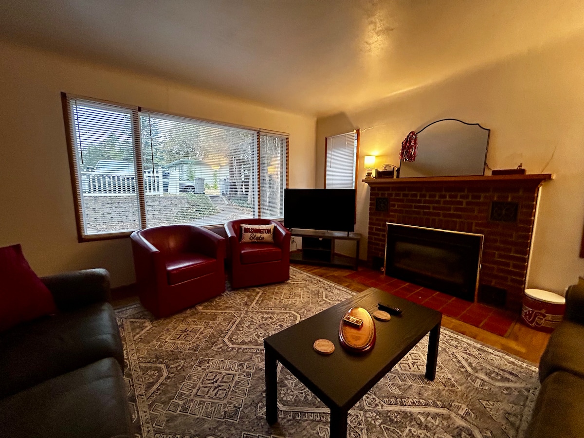 Enjoy our warm, cozy and fully equipped lower unit apartment conveniently located just off Stadium Way! WSU and downtown Pullman are all within a walk or short drive, and a 5 minute walk will get you to Rosauers grocery store, Starbucks, and other local restaurants. After a fun filled day visiting with family & friends, touring the campuses, working, or exploring the Palouse, unwind on the patio or next to the fireplace, while enjoying all the space and privacy the apartment has to offer!