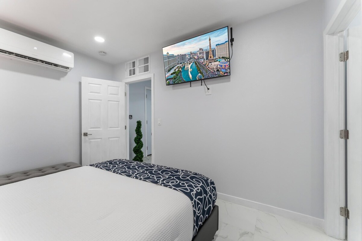 Welcome to our modern and cozy retreat in East Las Vegas, just a 20 minute drive away from the vibrant Las Vegas Strip and downtown area. This newly remodeled detached casita is a 1-bedroom, 1-bathroom oasis perfect for those seeking relaxation and comfort. Stay connected with complimentary WiFi, and unwind enjoying your favorite shows on the new TV. Book your stay with us today and discover the perfect balance of modern convenience and cozy relaxation in East Las Vegas.