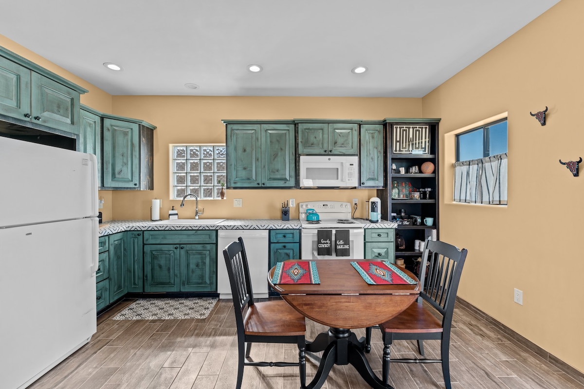 This charming 760 sq ft casita on 3 acres, features a full kitchen with an abundance of knotty alder cabinets equipped with all the cooking essentials. The living room offers a reclining couch and 55 in tv. 2 bedrooms offer a Queen adjustable bed and two twin beds with a washer and dryer, 1 bathroom with walk in tile shower. Stay a night or week and enjoy what Wickenburg has to offer. Horse stalls and turnout areas are available with a separate fee from Casita rental.