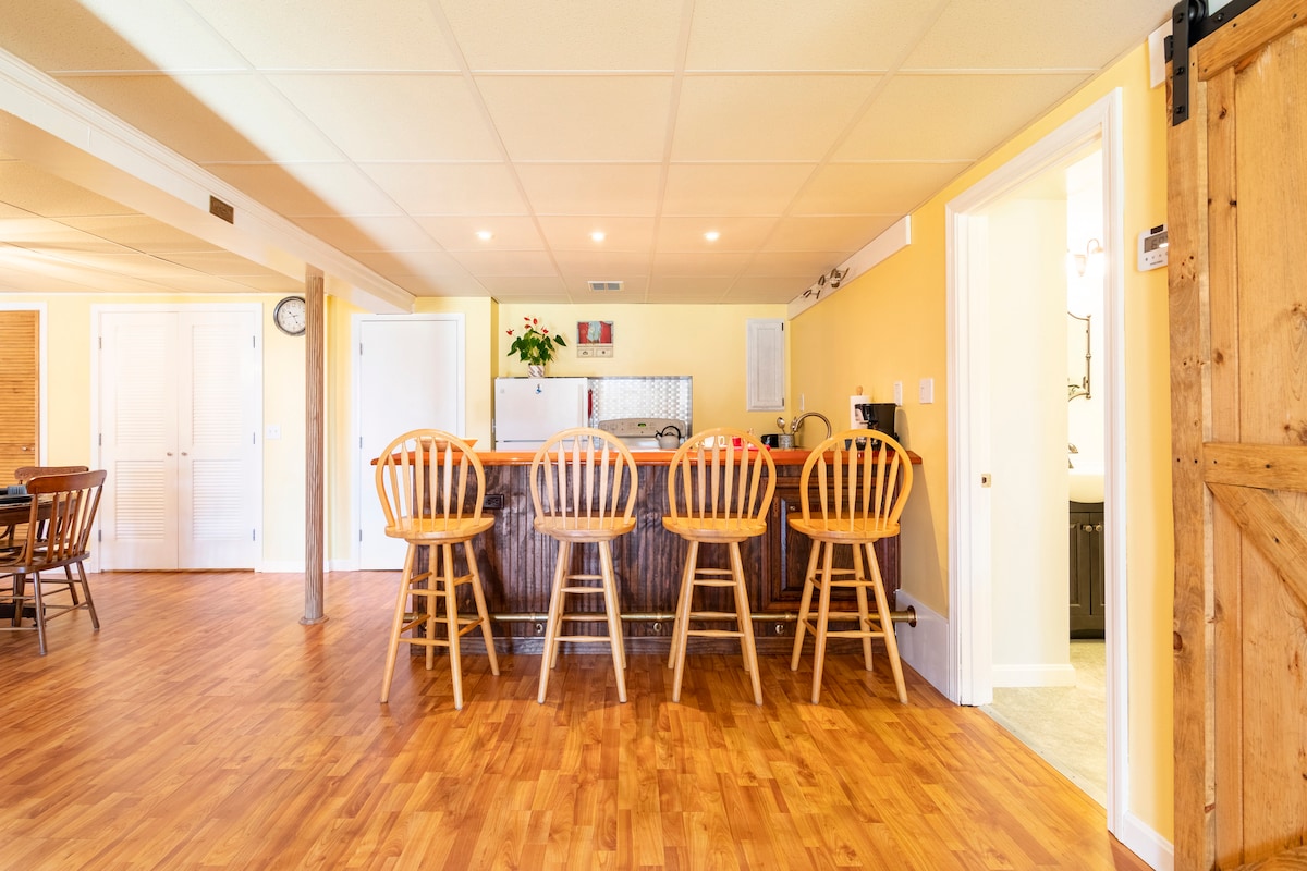 Disfruta de las vistas al lago Silver Spring, North Kingstown, RI. Despiértate con amaneceres espectaculares y los sonidos de los bosques desde este apartamento de un dormitorio, sala de estar abierta y jardín. La sala de estar y el dormitorio se abren a una zona exterior privada para relajarse y cenar. Al amanecer/atardecer, mueve tu silla junto al lago y disfruta de las vistas. Aunque la propiedad está enclavada en el bosque, el acceso por carretera es rápido a Wickford Village, al mar/playas, a Newport y al aeropuerto.