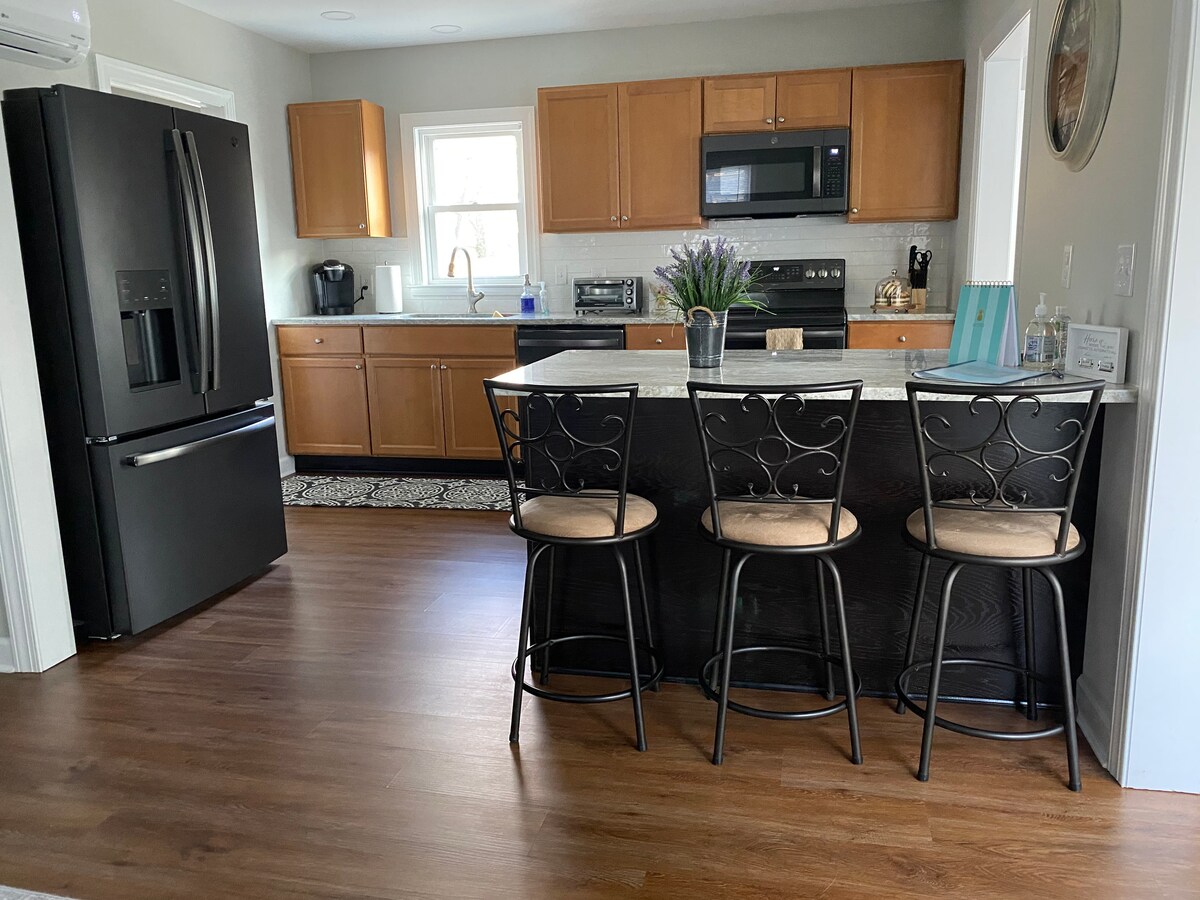 Relájate en una zona tranquila de Salisbury en esta acogedora casa de 3 dormitorios y 2 baños completos. Una sensación de granja te da la bienvenida a casa después de un largo día de trabajo, un viaje deportivo o unas vacaciones. Disfruta de todos los muebles nuevos, incluida ropa de cama de lujo y televisores inteligentes. Con una ubicación céntrica y cerca del centro de la ciudad para ir de compras y cenar en uno de los muchos restaurantes locales. A solo 30 minutos de las playas de Ocean City y Assateague Island. A una milla de Tidal Health PRMC y a media manzana de la Universidad de Salisbury.