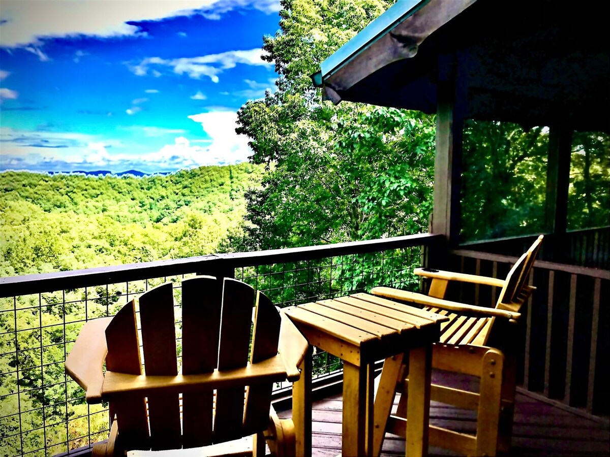 ¡Te damos la bienvenida a Blue Horizon Hideaway! ¡Disfruta de una vista inmejorable del monte Jefferson con la comodidad de tener restaurantes, cervecerías, tiendas, senderismo y el río New cerca! Las paredes de 14 pies y las amplias ventanas permiten que la luz natural inunde todas las habitaciones. Relájate mientras ves las puestas de sol y los colores otoñales desde la terraza. Las fotos no hacen justicia a este escondite, reserva ahora para disfrutar de la belleza del monte Jefferson y las montañas Blue Ridge circundantes.