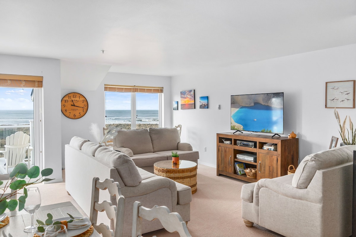 Sumérgete en el ambiente playero en este último piso, condominio frente al mar con vistas al impresionante océano Pacífico. Despiértate con olas relajantes, duerme en el resplandor del atardecer o disfruta de la energía de una tormenta salvaje o una marea king. Disfruta de kilómetros de playas vírgenes a pie o toma el suave camino pavimentado por la ADA junto al océano a pie, en silla de ruedas o en bicicleta. Juegue en la piscina de agua salada climatizada de temporada (mayo-13 de octubre), spa, sala de ejercicios, casa club, zona de barbacoa, cancha de pickleball/baloncesto, putting green y más.