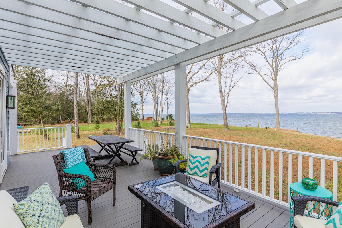 Moderno refugio frente a la bahía que combina un diseño atrevido y una comodidad serena. Las ventanas del suelo al techo enmarcan las vistas panorámicas de Chesapeake, mientras que el mobiliario elegante y el salón de concepto abierto invitan a la relajación. Apto para mascotas y niños, con productos esenciales de alta calidad para todos los huéspedes. Relájate junto a la hoguera, cena con vistas y despierta con el sonido del agua. Una escapada sofisticada para familias, parejas o amigos que buscan estilo, espacio y tranquilidad en la costa. El arte está a la venta y apoya la caridad. Galería Redfish Irvington.
