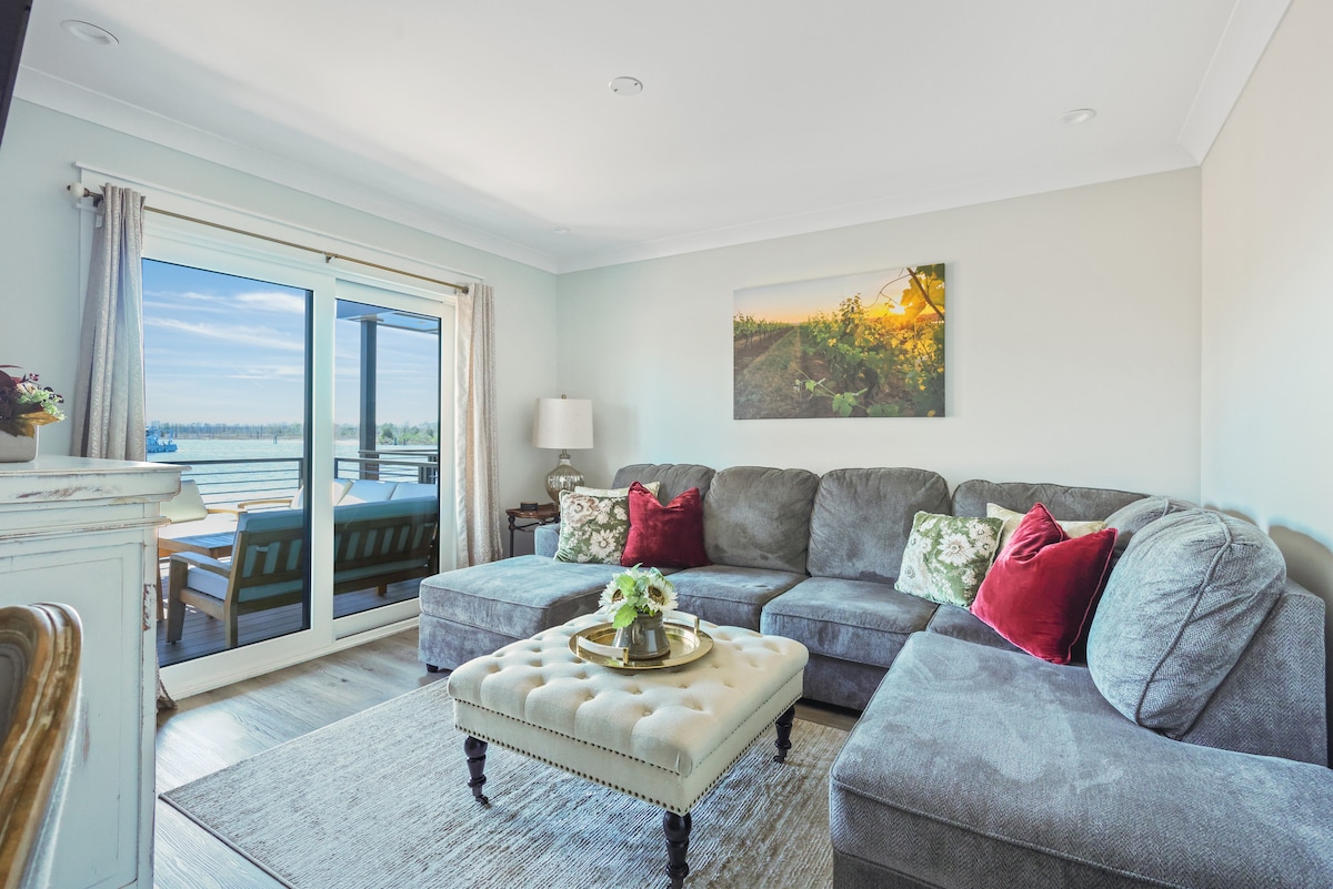 ¡Bienvenido a The Cove Riverwalk Villas, la comunidad de alquileres vacacionales más exclusiva de Wilmington! Experimenta la elegancia de Napa, una lujosa casa flotante inspirada en el Valle de Napa. Con maderas oscuras, colores ricos y decoración con temática de bodega, ofrece una escapada flotante como ninguna otra. Disfruta de impresionantes vistas del acorazado NC desde la cubierta y relájate en un entorno lujoso. Un escritorio dedicado proporciona espacio para el trabajo o la reflexión, lo que hace de Napa el refugio perfecto frente al mar para la relajación y la inspiración.
