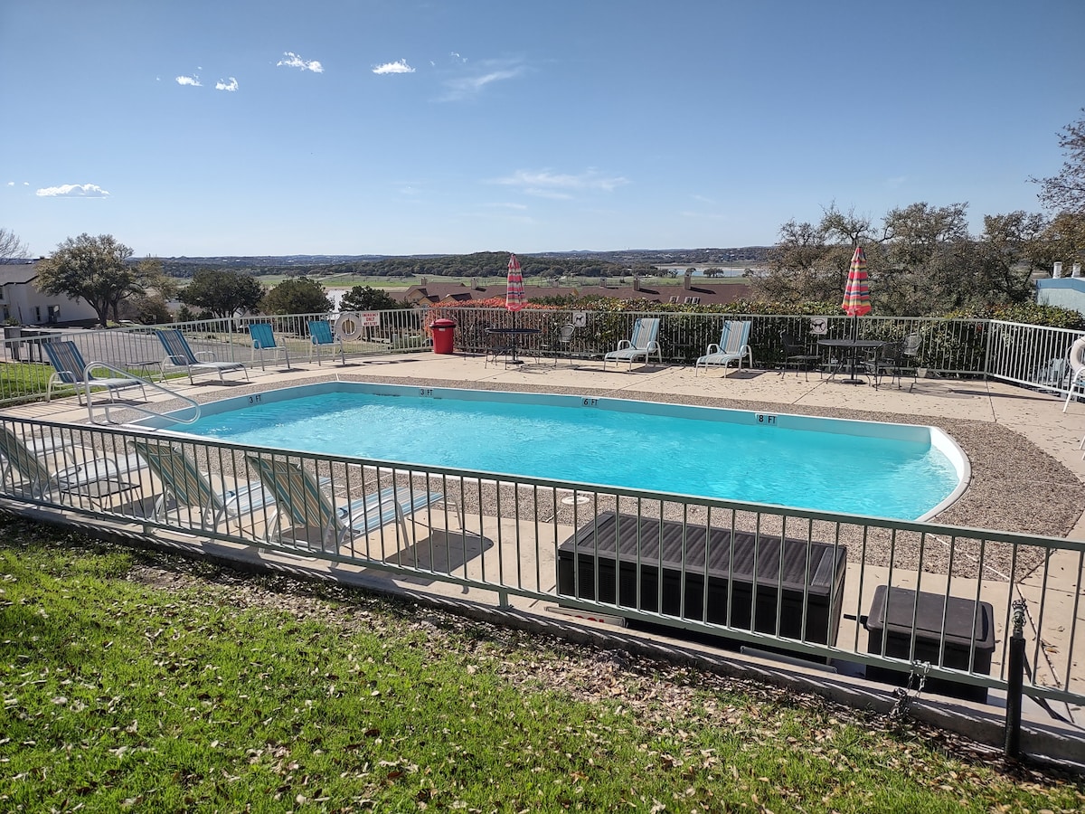 ¡Te damos la bienvenida a The Overlook Tower! Esta casa de 2 dormitorios y 1 baño es perfecta para parejas, familias pequeñas y amantes del lago que buscan una escapada tranquila. Las comodidades incluyen un jacuzzi para 5 personas, un gran patio con tumbonas/sillas, vistas panorámicas de Texas Hill Country, conexión para RV/cargador de Tesla, 2 televisores inteligentes, 2 sofás, una mesa de comedor y una cocina totalmente equipada. ¡Cada habitación está equipada para que disfrutes de tu viaje con comodidad! ¡Disfruta de tu estancia!