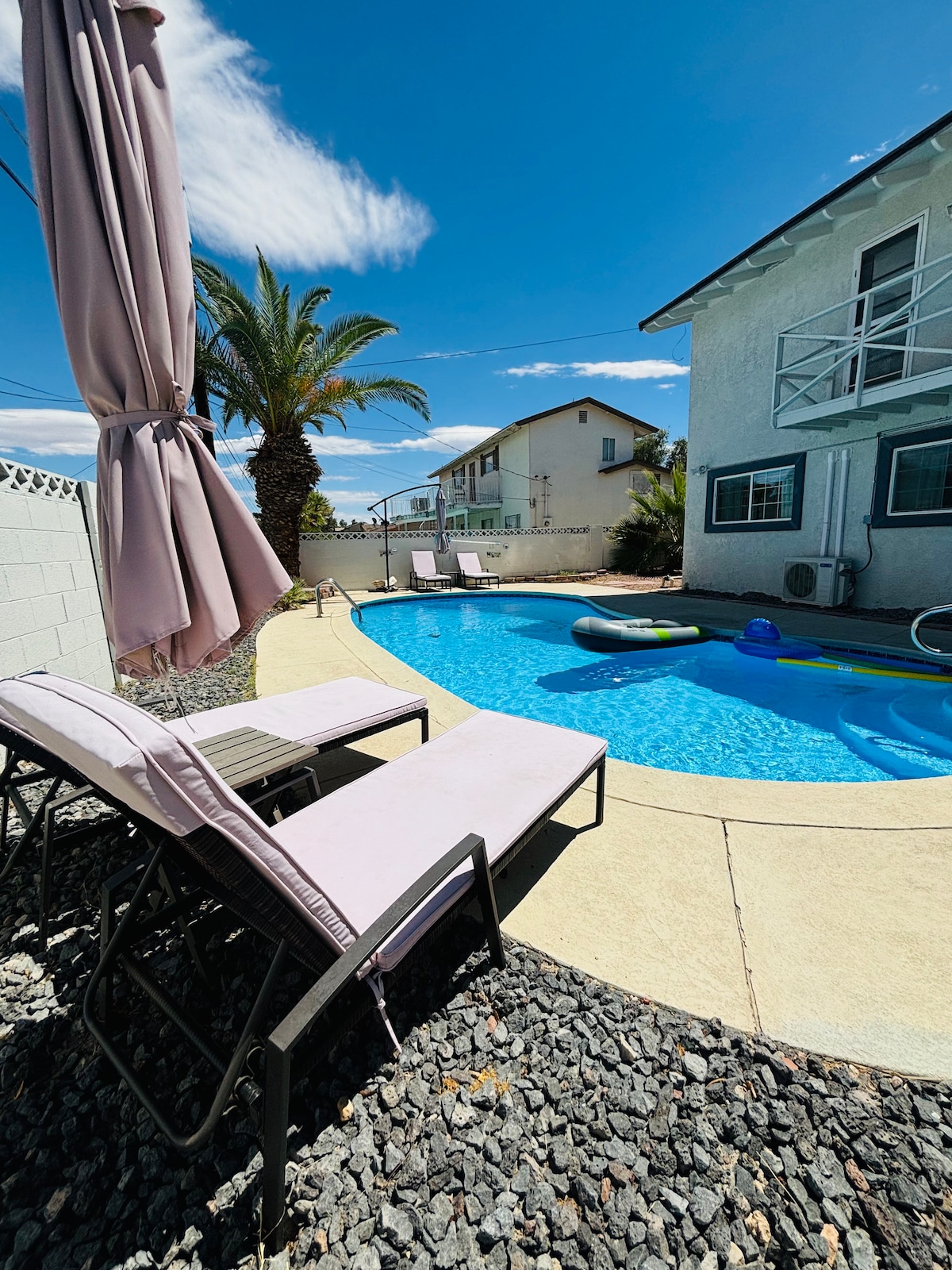 Relájate en esta escapada única y tranquila. Casa de mediados de siglo construida justo en el hoyo 9 en el campo de golf nacional de Las Vegas. A 10 minutos de la franja, a 10 minutos del aeropuerto. Se admiten mascotas :) Cocina totalmente abastecida. Piscina recientemente renovada (lo siento sin calefacción) con cubierta mojada y banco submarino. Muebles de patio, sofá cama y tumbonas Internet de fibra, lavadora/secadora, banda de roca y juegos de mesa NOTA: solo hay un baño **Por el bien de los futuros huéspedes, NO se permiten fiestas ni fumar en el interior**