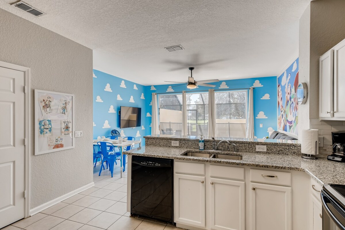 ¡Te damos la bienvenida a nuestro encantador refugio de 3 dormitorios y 3 baños, meticulosamente diseñado para abrazar la comodidad y la imaginación de tu familia! Entra en suites temáticas sacadas directamente de tus historias favoritas, como Toy Story y Mickey Mouse. Con una amplia capacidad para un máximo de 10 huéspedes, ¡tu aventura en Disney comienza aquí! Los siguientes servicios adicionales incluyen costes adicionales: Barbacoa Check-in antes de la hora establecida Salida después de la hora establecida