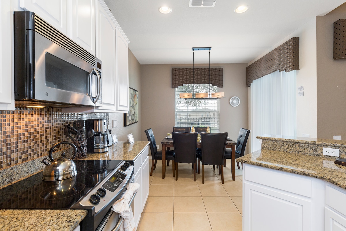 ¡Bienvenido a tu lujosa escapada de 4 dormitorios de una sola planta en el corazón de un centro vacacional cerrado a solo 2,6 millas de la magia de Disney World! Esta casa de vacaciones meticulosamente diseñada ofrece no solo comodidad y conveniencia, sino también una variedad de servicios de centro vacacional que prometen una estancia inolvidable. La casa de vacaciones de tus sueños no es solo un alojamiento, sino una puerta de entrada a un mundo de encanto y relajación. ¡Reserva tu estancia ahora y deja que comience la magia!