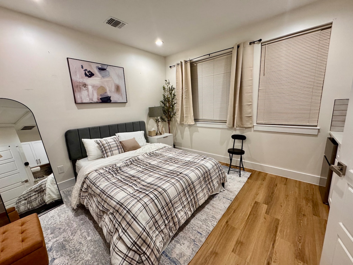 Estudio privado céntrico, tranquilo y lleno de arte de 400 pies cuadrados con cama tamaño queen y entrada privada en un barrio pintoresco. A poca distancia a pie de restaurantes y cafeterías de North Loop (Epoch Coffee, Double Trouble, Tigress Bar, Homeslice Pizza). Todos los electrodomésticos nuevos y un hermoso baño tipo spa con ducha a ras de suelo. Cocina completa con nevera grande. Se puede aparcar de manera segura en la calle. No se permite fumar ni traer mascotas. Horario de silencio de 22:00 a 8:00 (la unidad está unida a la casa principal y los anfitriones viven en el lugar).