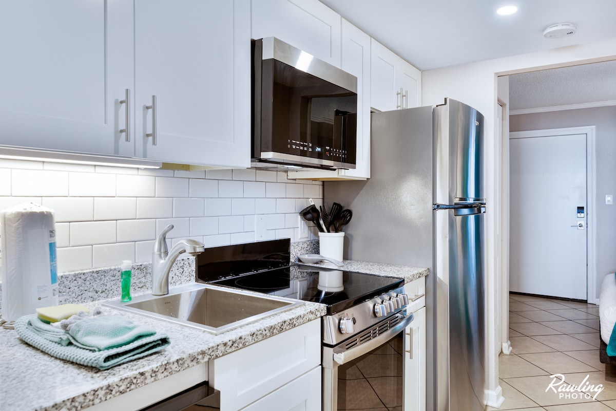 Descansa tus increíbles aletas en la acogedora Mermaid's Cove. ¡MC está completamente renovado y es divertido! ¡Frente al mar en el octavo piso para disfrutar de fantásticos amaneceres y puestas de sol! Juega a ser sirena durante el día y date un chapuzón en una de las 3 piscinas al aire libre, en el río lento o en el interior de la piscina/bañera de hidromasaje. ¿Tus aletas necesitan un descanso? Relájate en una de las tumbonas + hamacas. ¿Tienes hambre? Hay un restaurante y un bar en el hotel para comer algo rápido. ¿Te gusta preparar tus propias delicias? ¡Usa nuestra cocina! Nevera de tamaño completo, microondas, horno de convección, fogones y lavavajillas.